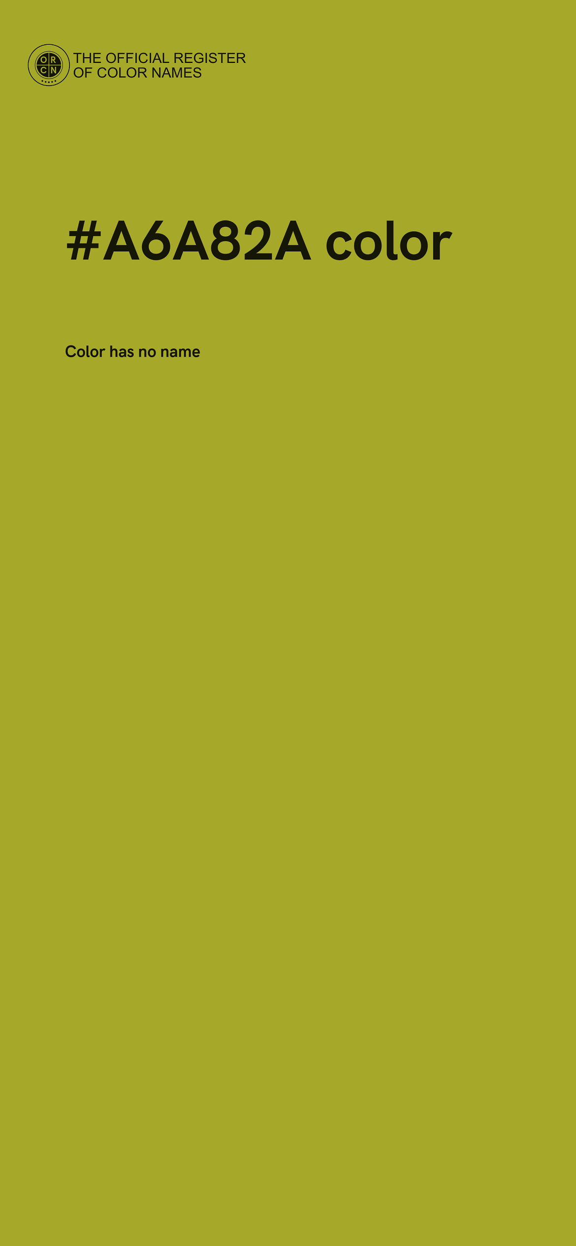 For printing in non digital world, #A6A82A is represented in CMYK as 1 Cyan, 0 Magenta, 49 Yellow, and 34 Black (Key) (C:1 M:0 Y:49 K:34).