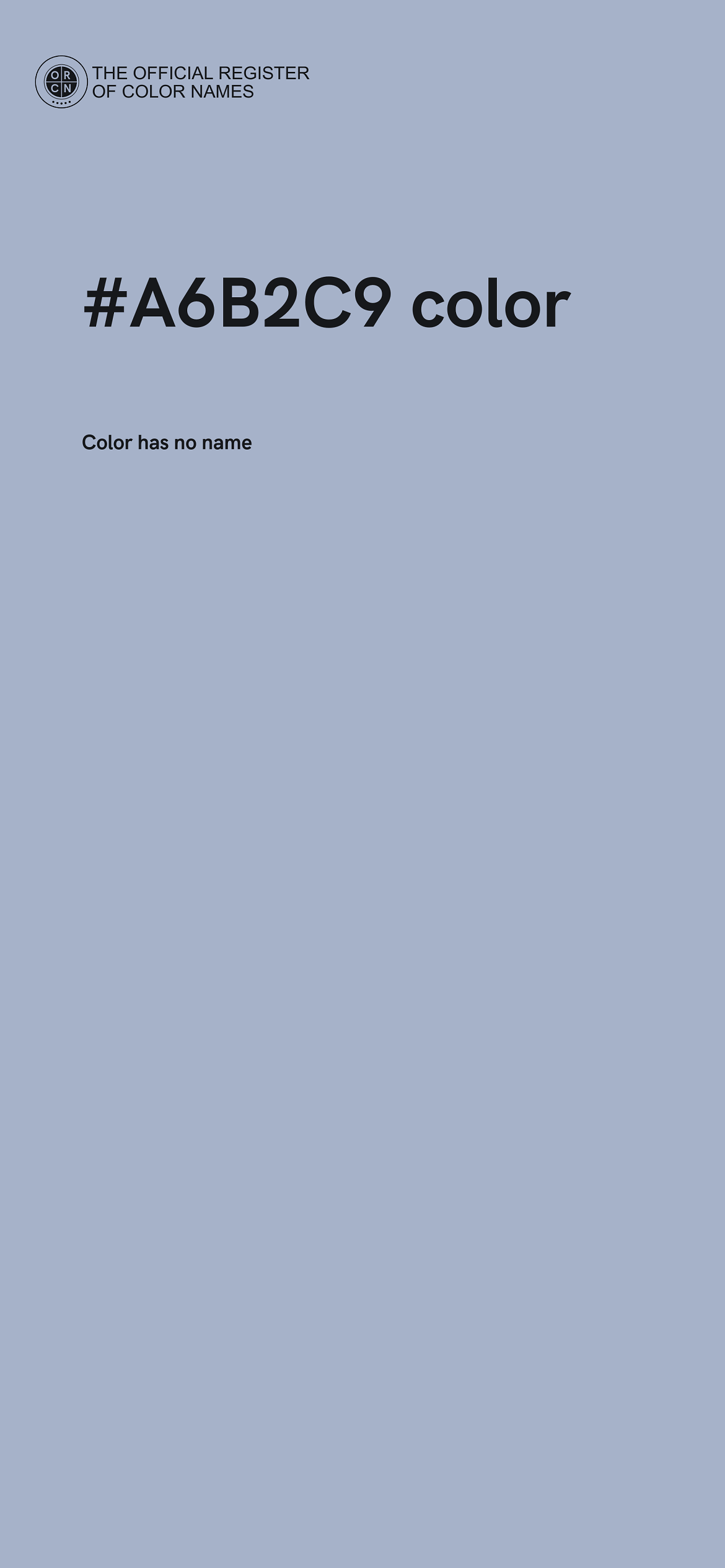 For printing in non digital world, #A6B2C9 is represented in CMYK as 14 Cyan, 9 Magenta, 0 Yellow, and 21 Black (Key) (C:14 M:9 Y:0 K:21).