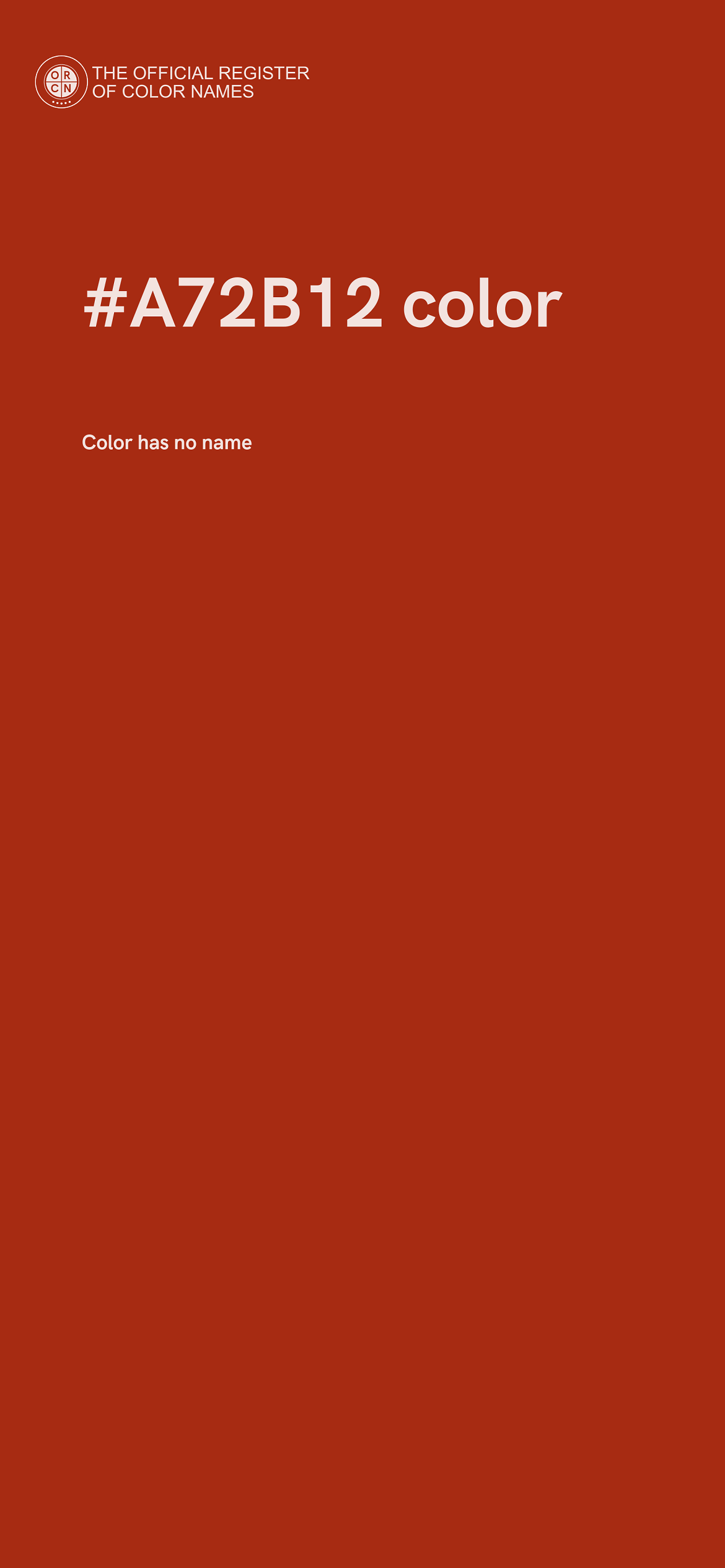 The digital color HEX #A72B12 belongs to the Red Color Family featuring High Saturation (Saturation Family) and Neutral (Brightness Family).