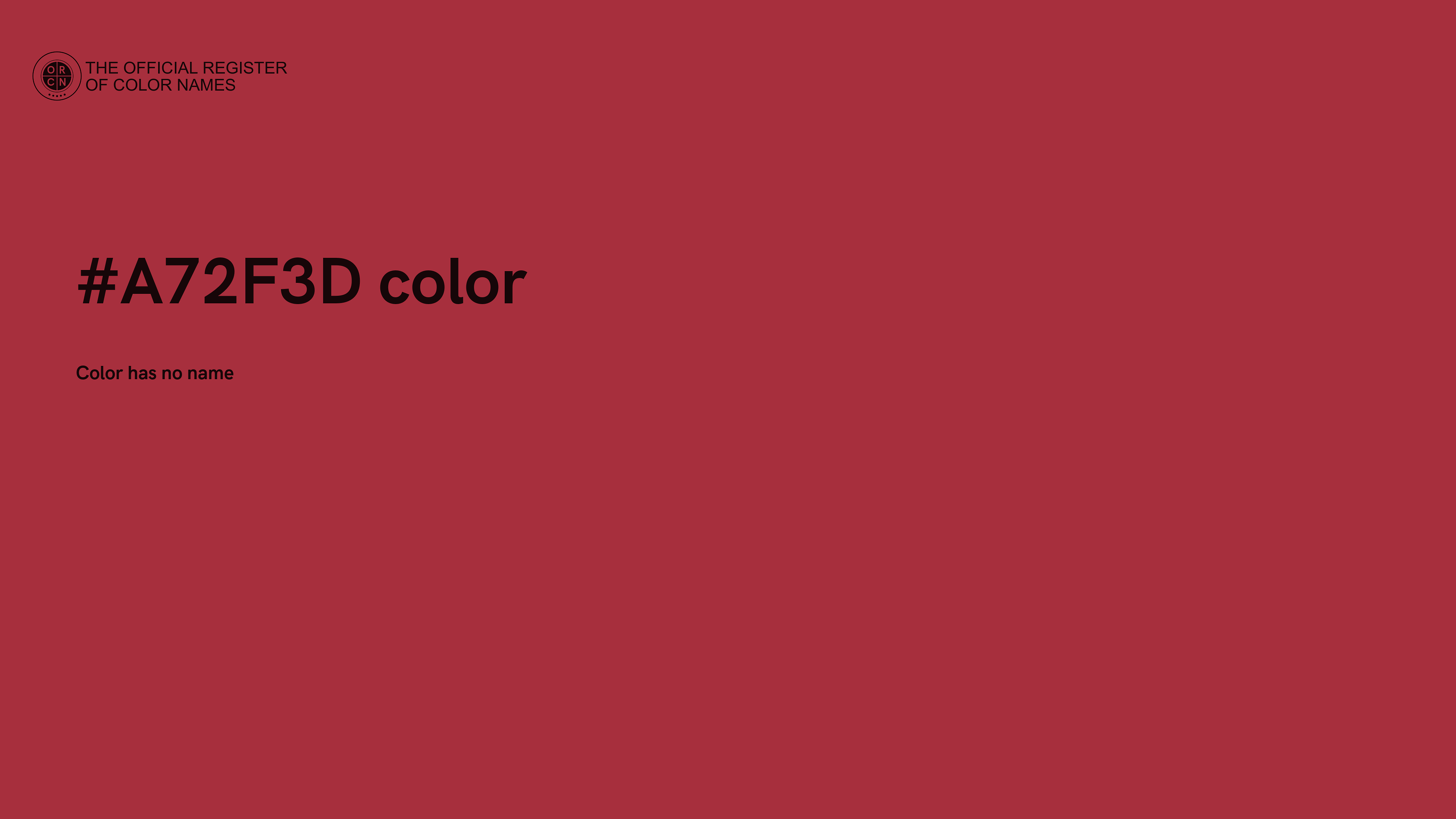 HEX code #A72F3D represent the color in hexadecimal format by combining three values – the amounts of Red, Green and Blue (RGB). Its RGB composition is 167, 47, 61 ( rgb(167, 47, 61) ), which breaks down into 65.5% of Red, 18.4% Green and 23.9% Blue.