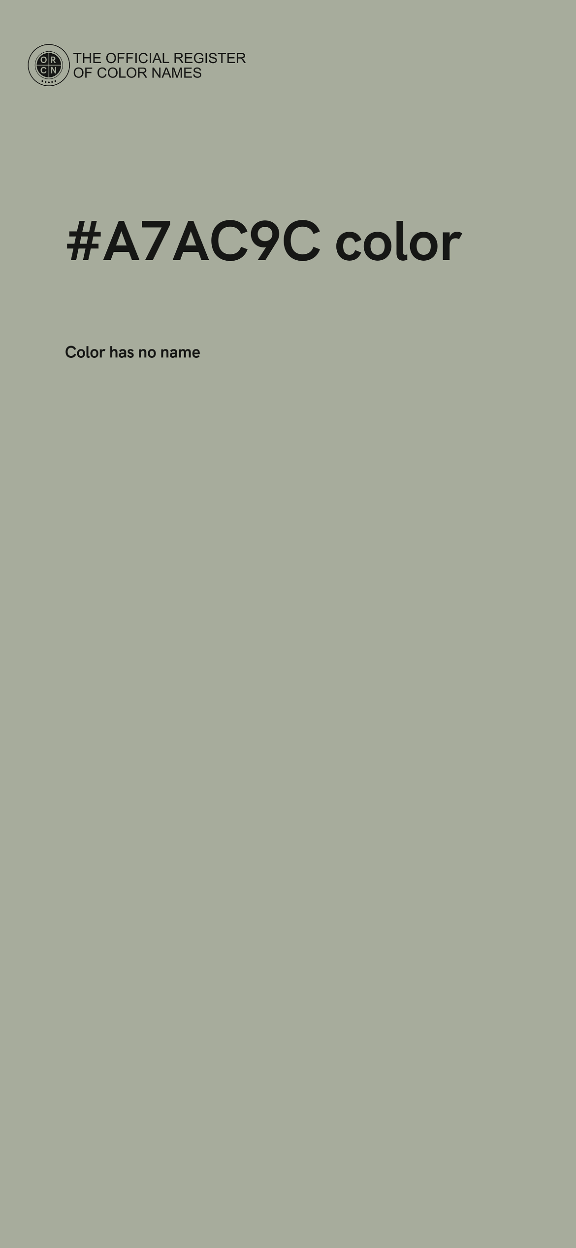 The digital color HEX #A7AC9C belongs to the Chartreuse Color Family featuring Desaturated (Saturation Family) and Very Light (Brightness Family).