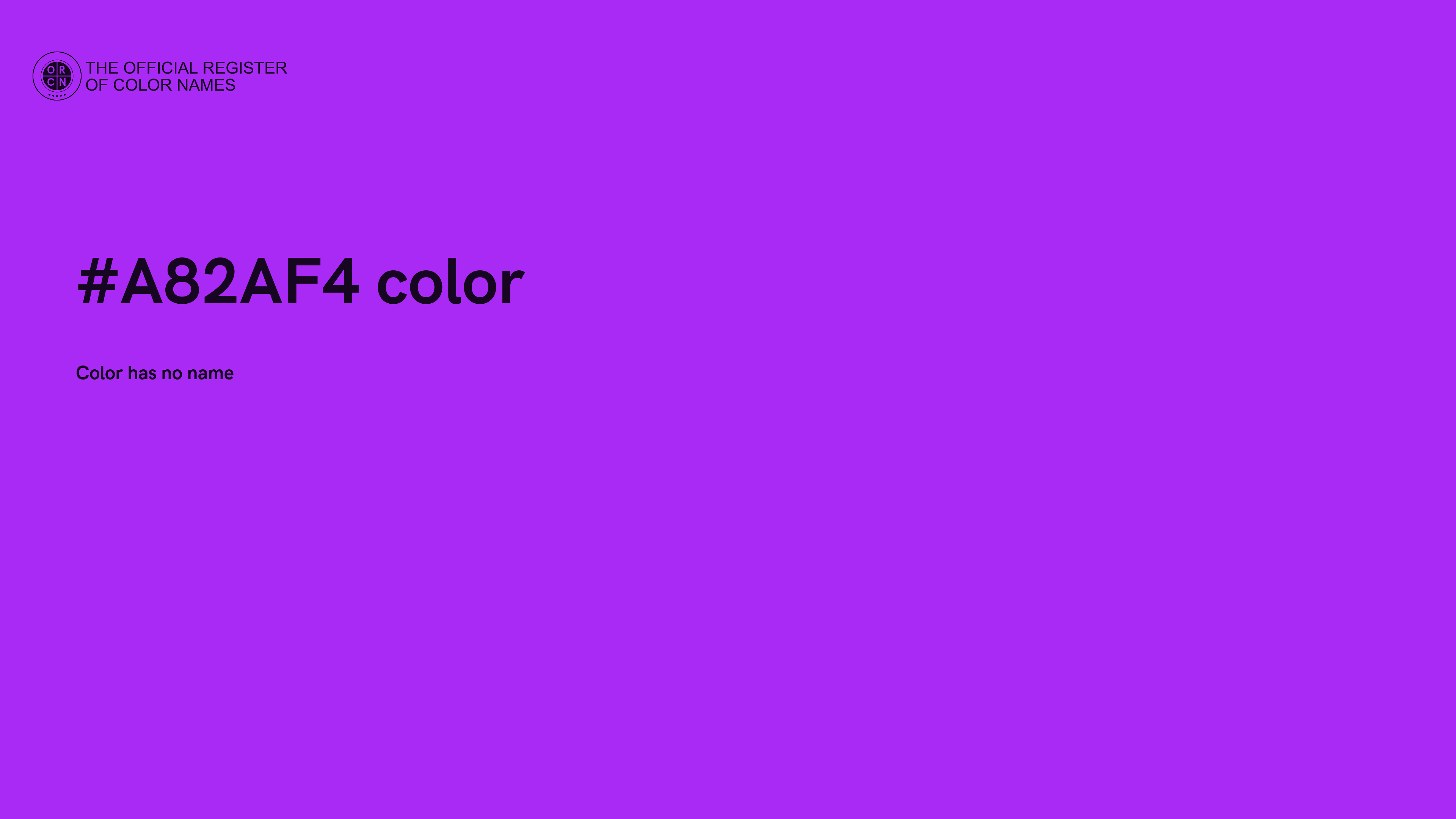 HEX code #A82AF4 represent the color in hexadecimal format by combining three values – the amounts of Red, Green and Blue (RGB). Its RGB composition is 168, 42, 244 ( rgb(168, 42, 244) ), which breaks down into 65.9% of Red, 16.5% Green and 95.7% Blue.