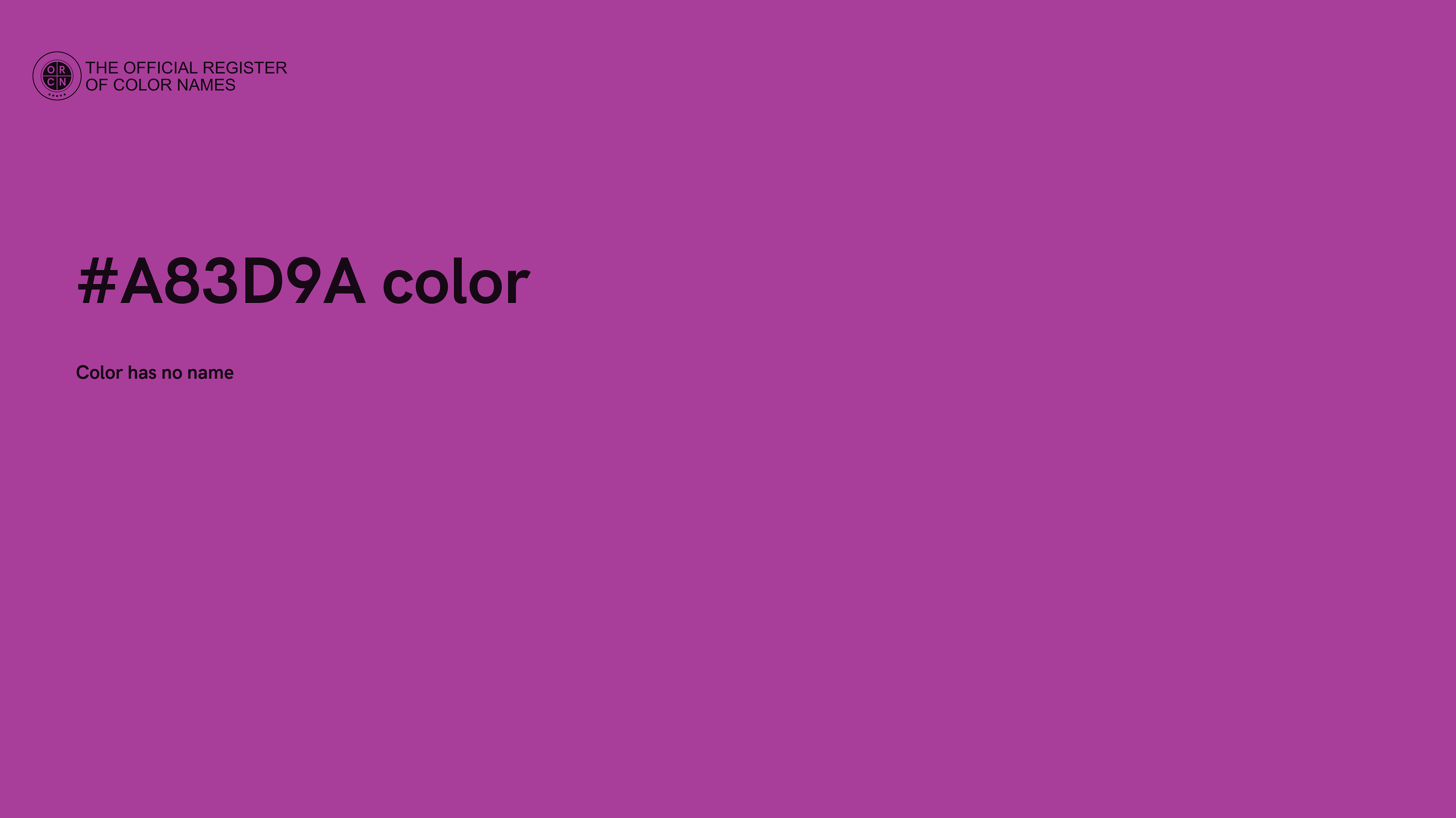 HEX code #A83D9A represent the color in hexadecimal format by combining three values – the amounts of Red, Green and Blue (RGB). Its RGB composition is 168, 61, 154 ( rgb(168, 61, 154) ), which breaks down into 65.9% of Red, 23.9% Green and 60.4% Blue.