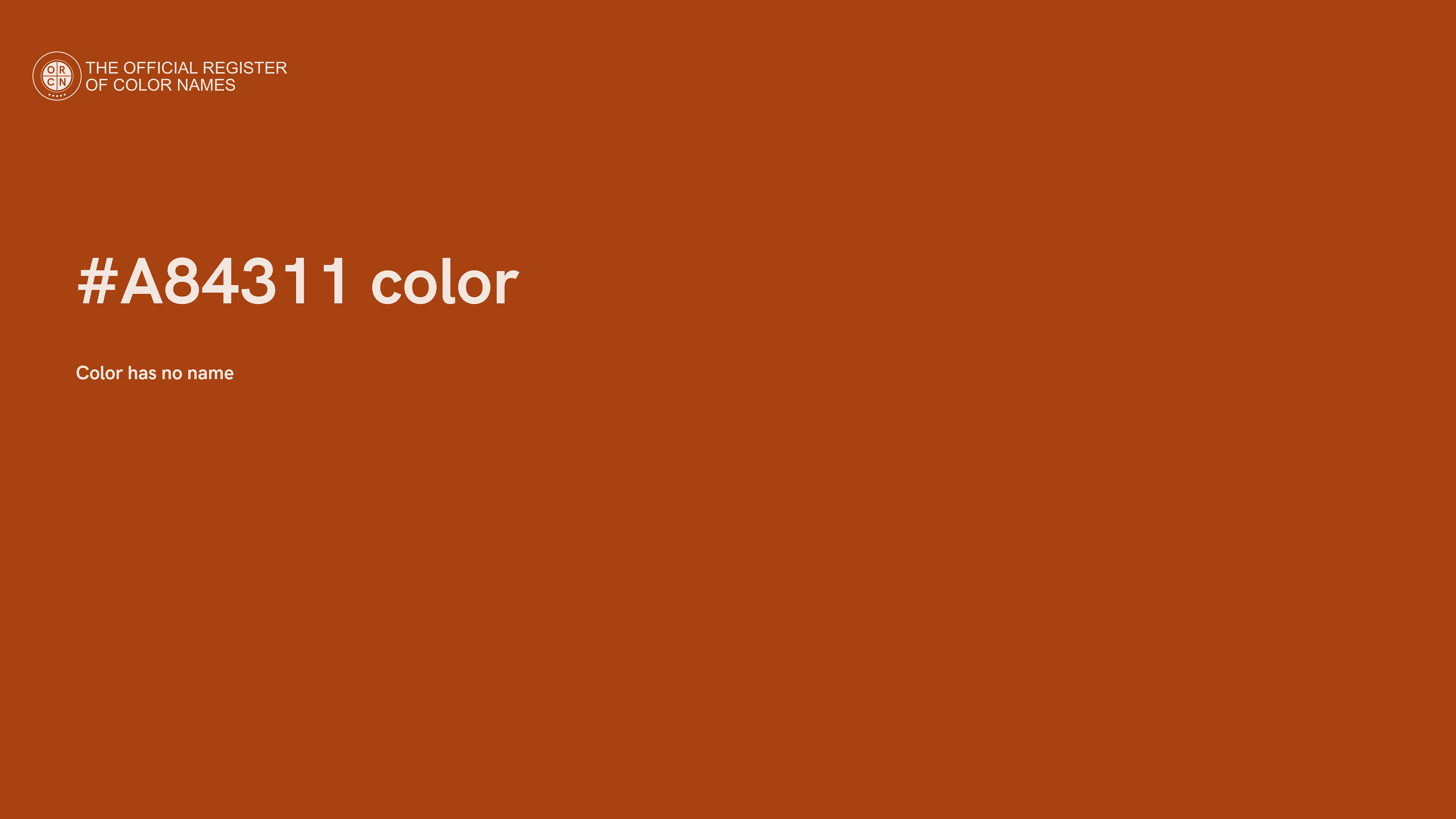The digital color HEX #A84311 belongs to the Orange Color Family featuring High Saturation (Saturation Family) and Neutral (Brightness Family).