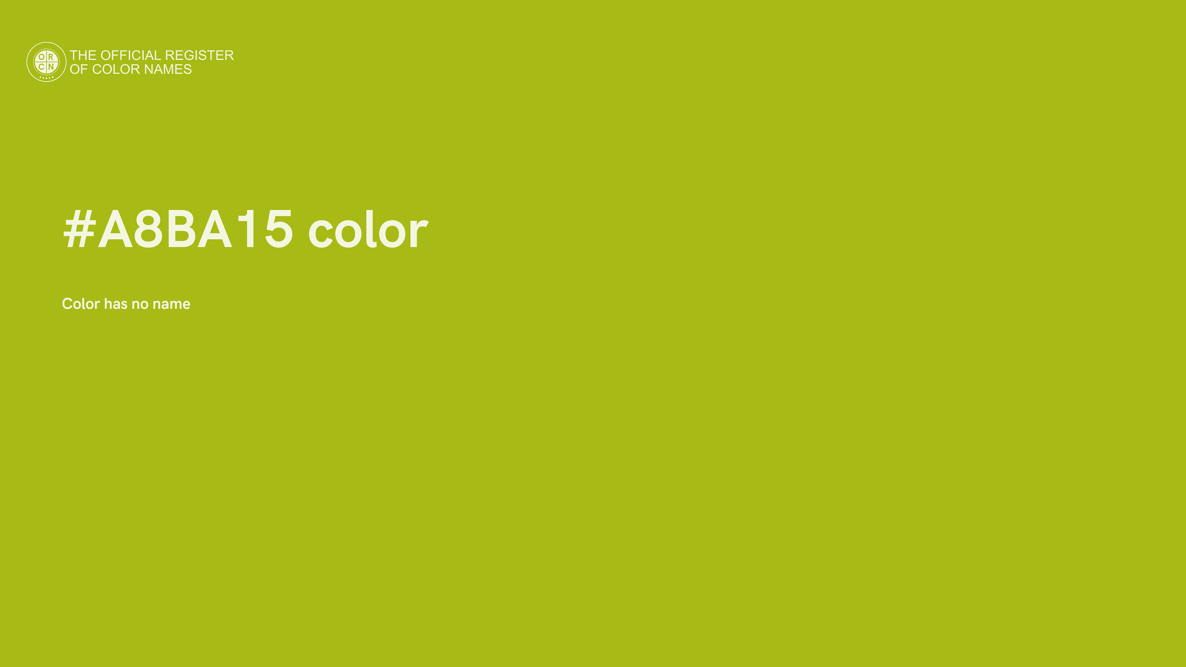 The digital color HEX #A8BA15 belongs to the Yellow Color Family featuring High Saturation (Saturation Family) and Light (Brightness Family).