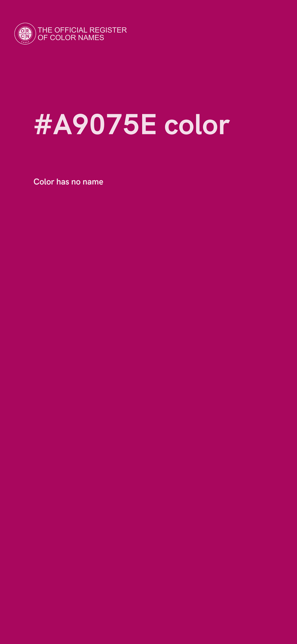 The digital color HEX #A9075E belongs to the Rose Color Family featuring Full Saturation (Saturation Family) and Neutral (Brightness Family).