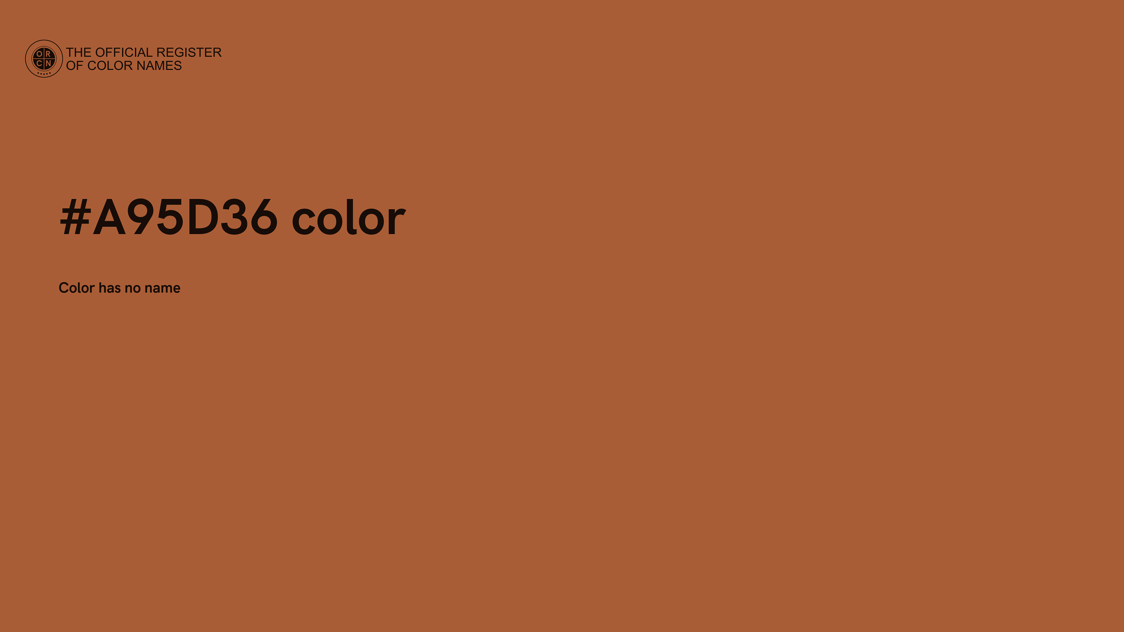 The digital color HEX #A95D36 belongs to the Orange Color Family featuring Moderate Saturation (Saturation Family) and Light (Brightness Family).