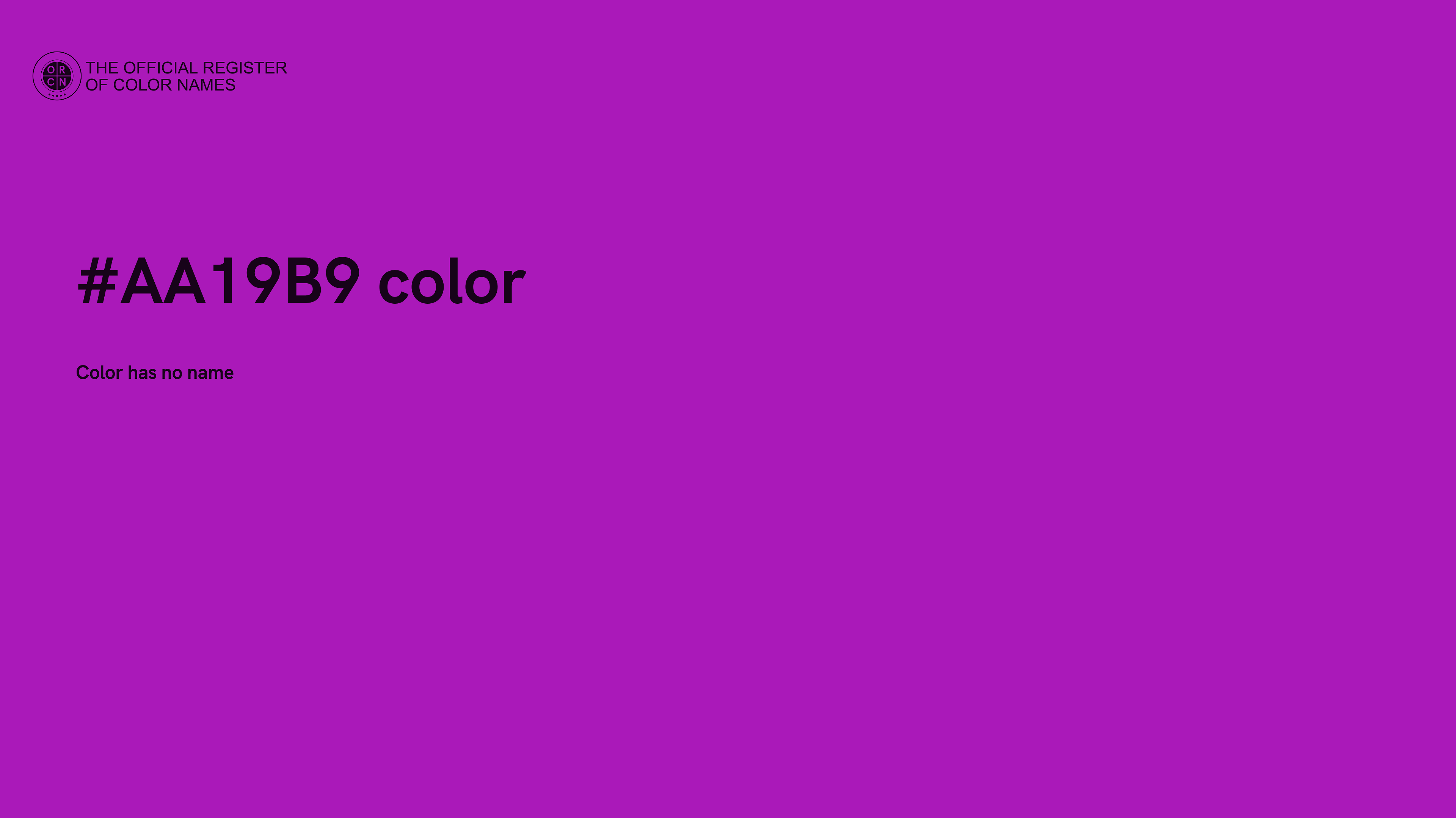The digital color HEX #AA19B9 belongs to the Magenta Color Family featuring High Saturation (Saturation Family) and Light (Brightness Family).