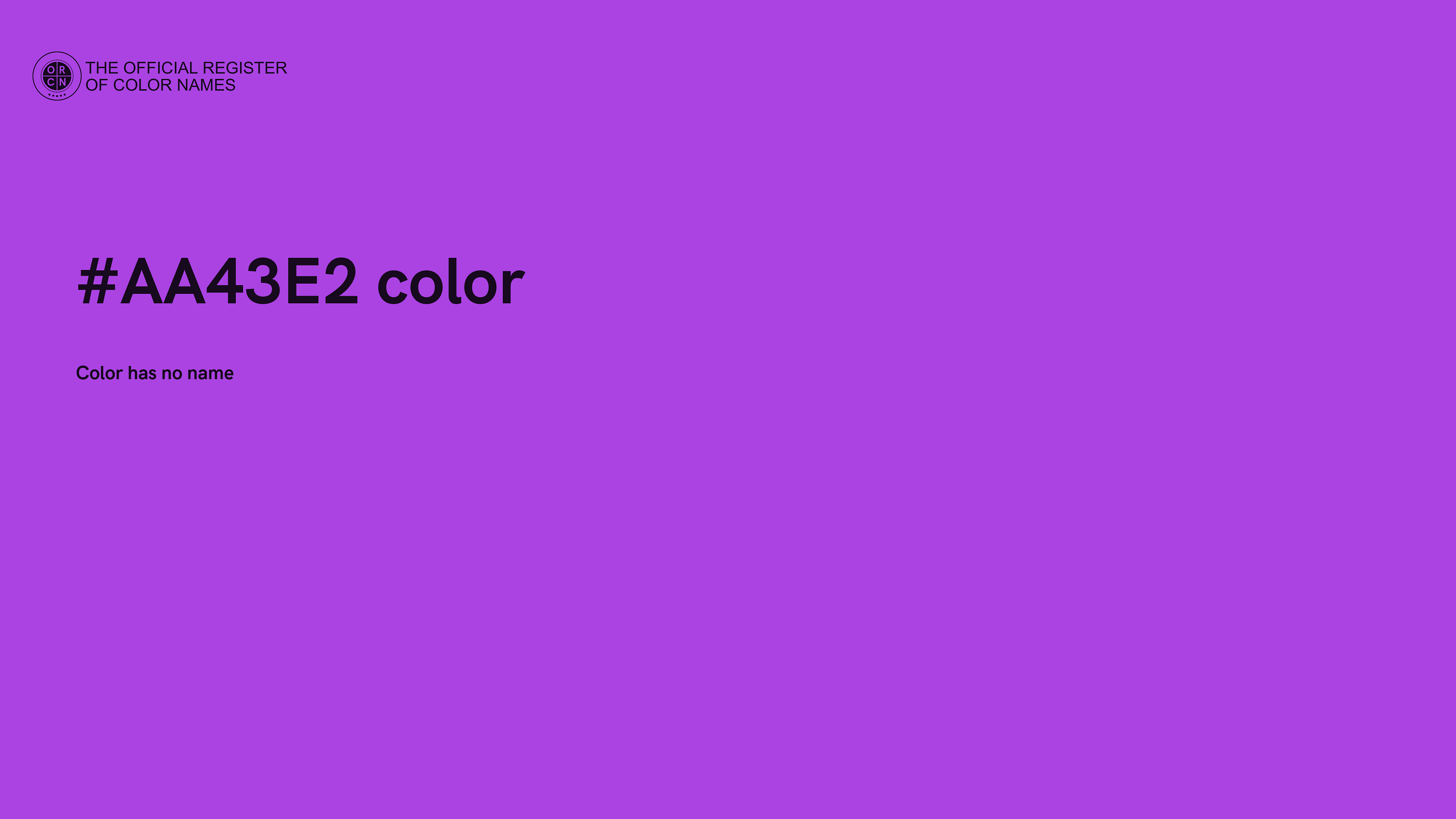 The digital color HEX #AA43E2 belongs to the Violet Color Family featuring High Saturation (Saturation Family) and Light (Brightness Family).