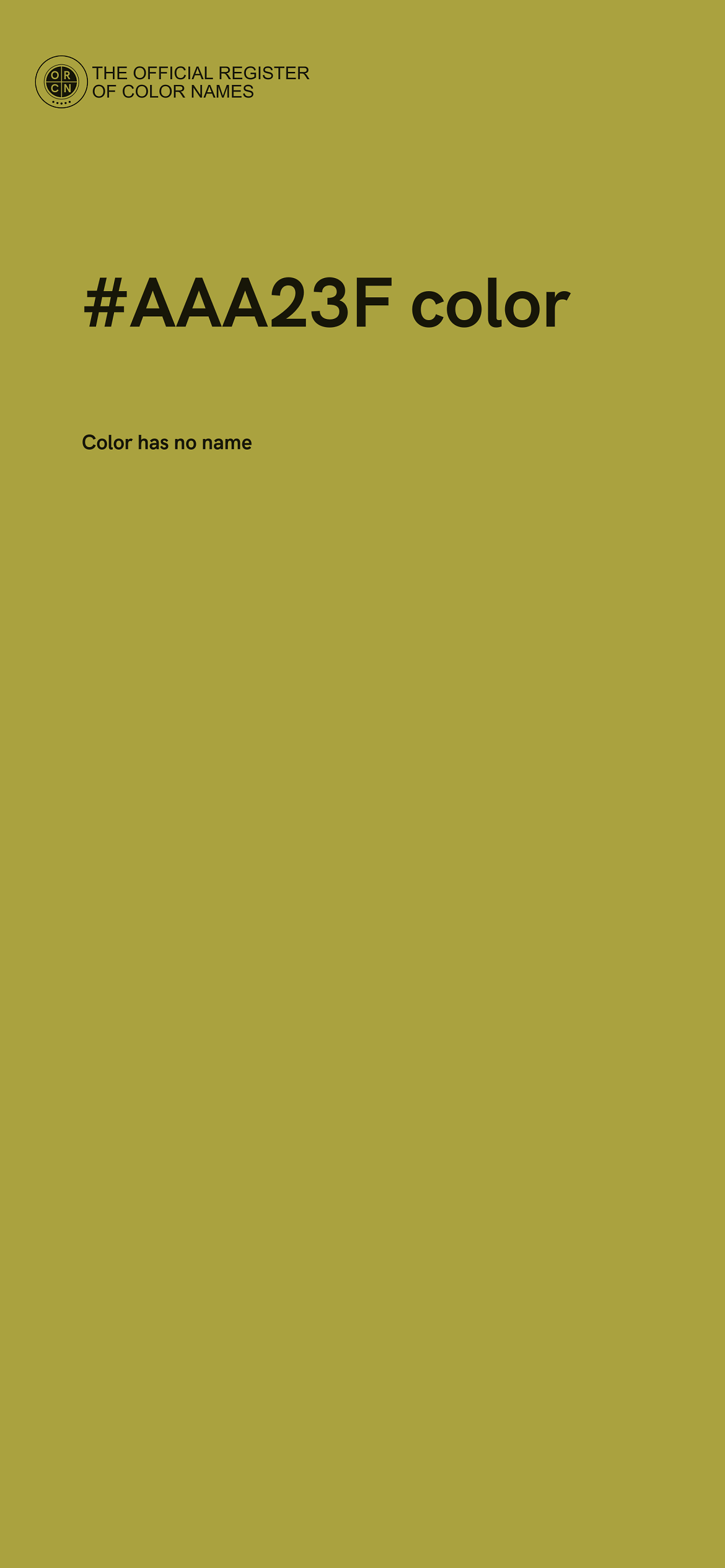 The digital color HEX #AAA23F belongs to the Yellow Color Family featuring Moderate Saturation (Saturation Family) and Light (Brightness Family).