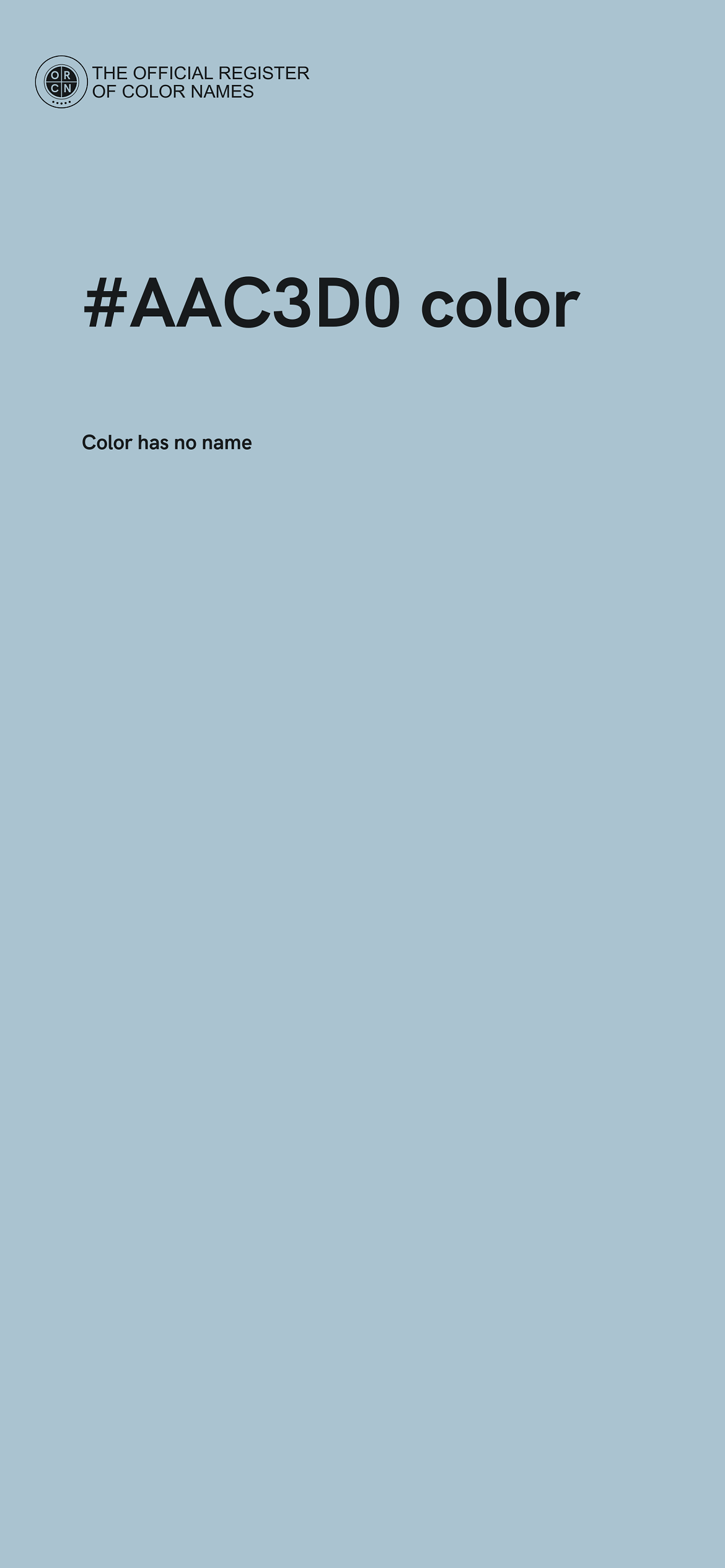The digital color HEX #AAC3D0 belongs to the Azure Color Family featuring Mild Saturation (Saturation Family) and Very Light (Brightness Family).