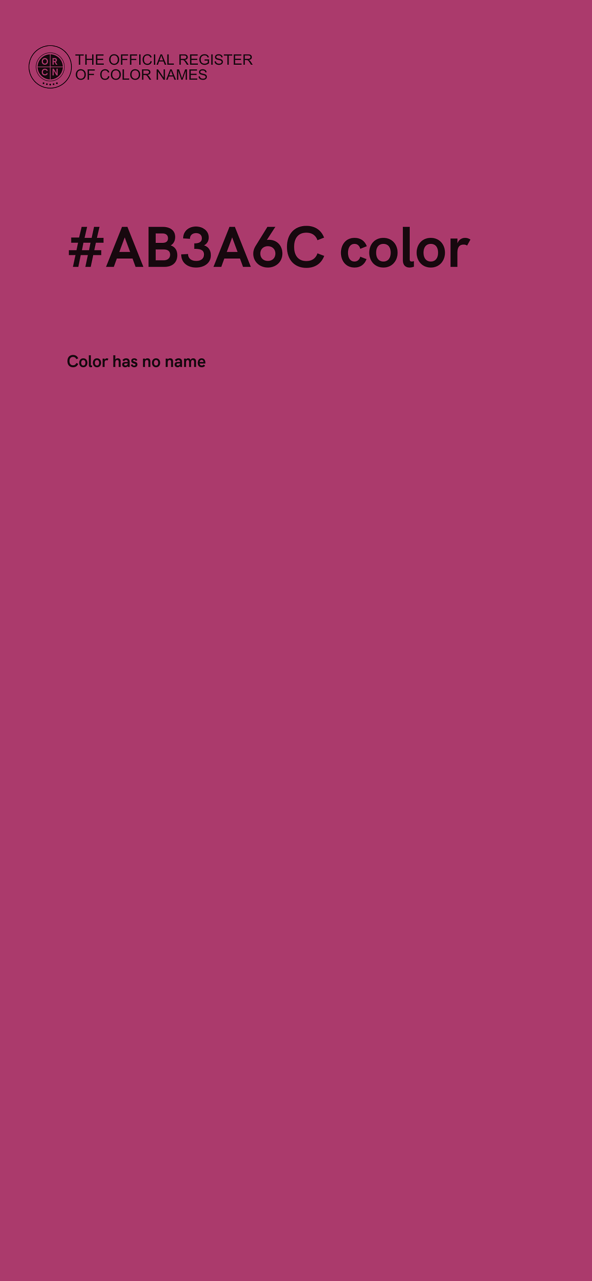 For printing in non digital world, #AB3A6C is represented in CMYK as 0 Cyan, 44 Magenta, 25 Yellow, and 33 Black (Key) (C:0 M:44 Y:25 K:33).