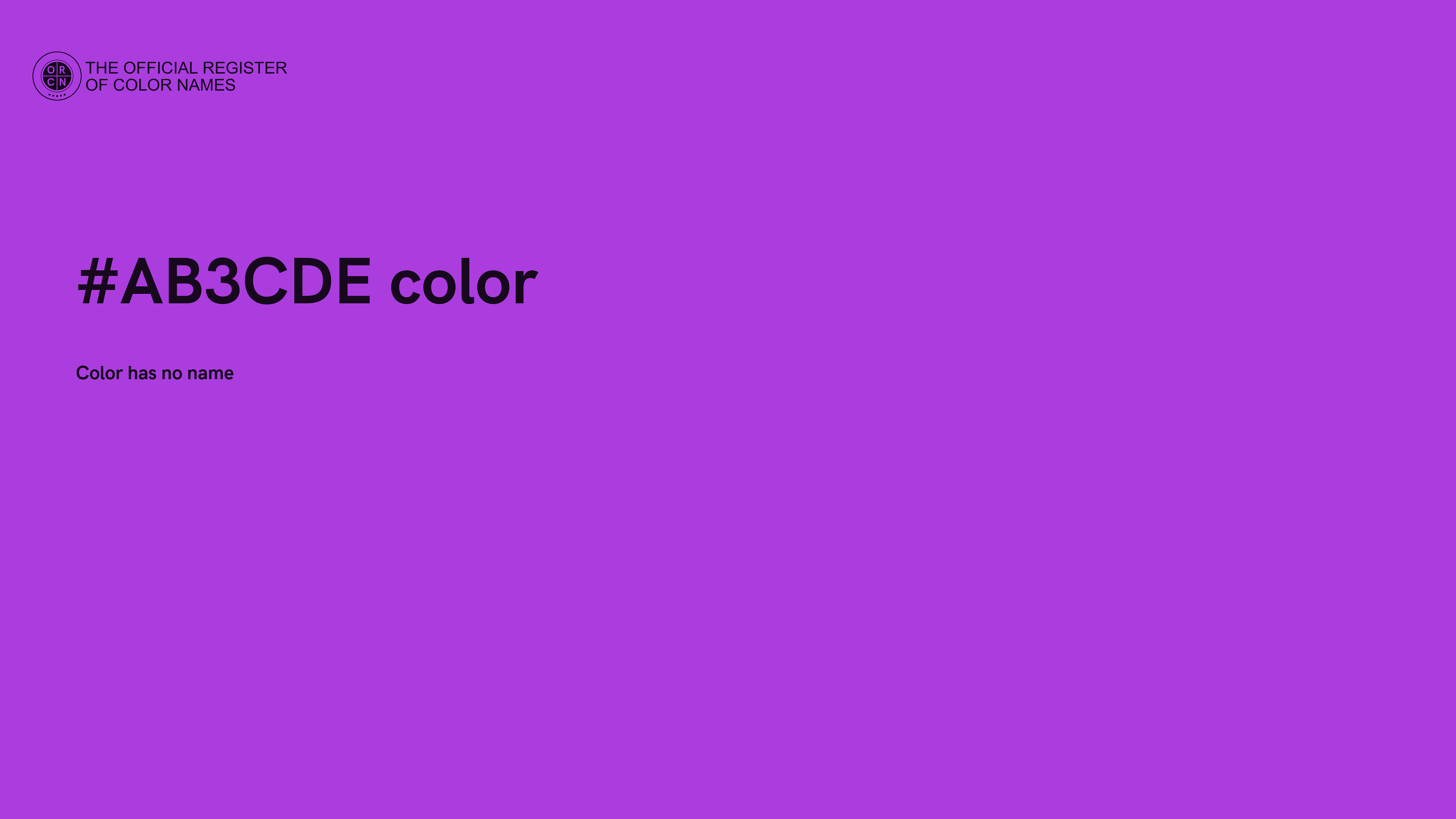 HEX code #AB3CDE represent the color in hexadecimal format by combining three values – the amounts of Red, Green and Blue (RGB). Its RGB composition is 171, 60, 222 ( rgb(171, 60, 222) ), which breaks down into 67.1% of Red, 23.5% Green and 87.1% Blue.