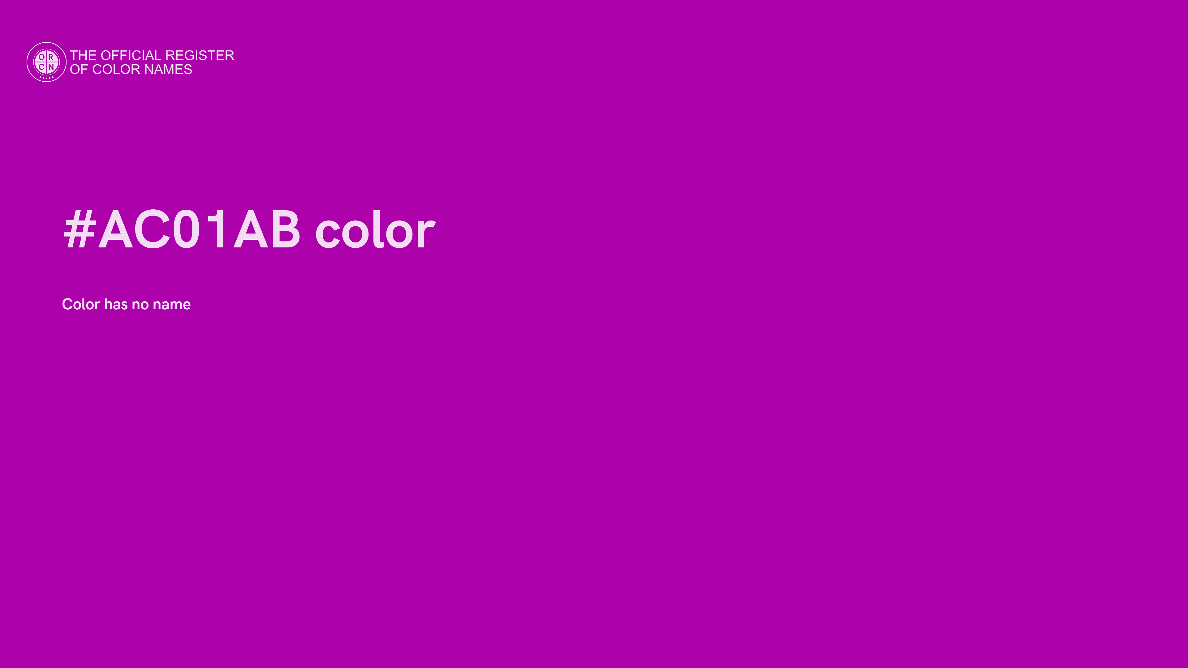 The digital color HEX #AC01AB belongs to the Magenta Color Family featuring Full Saturation (Saturation Family) and Neutral (Brightness Family).