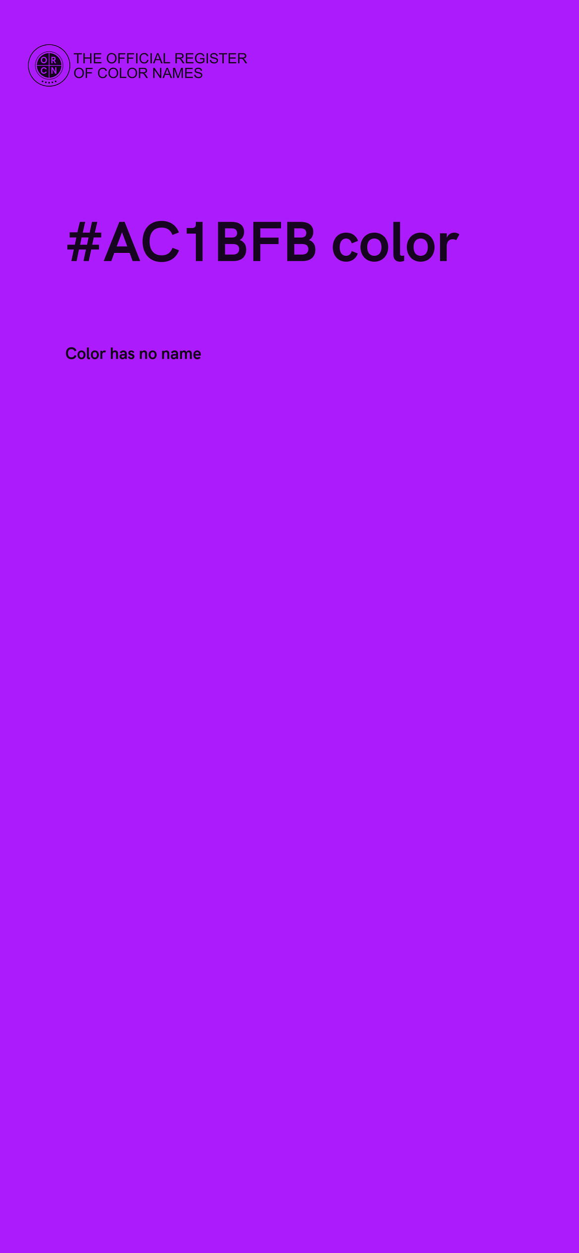 The digital color HEX #AC1BFB belongs to the Violet Color Family featuring Full Saturation (Saturation Family) and Light (Brightness Family).