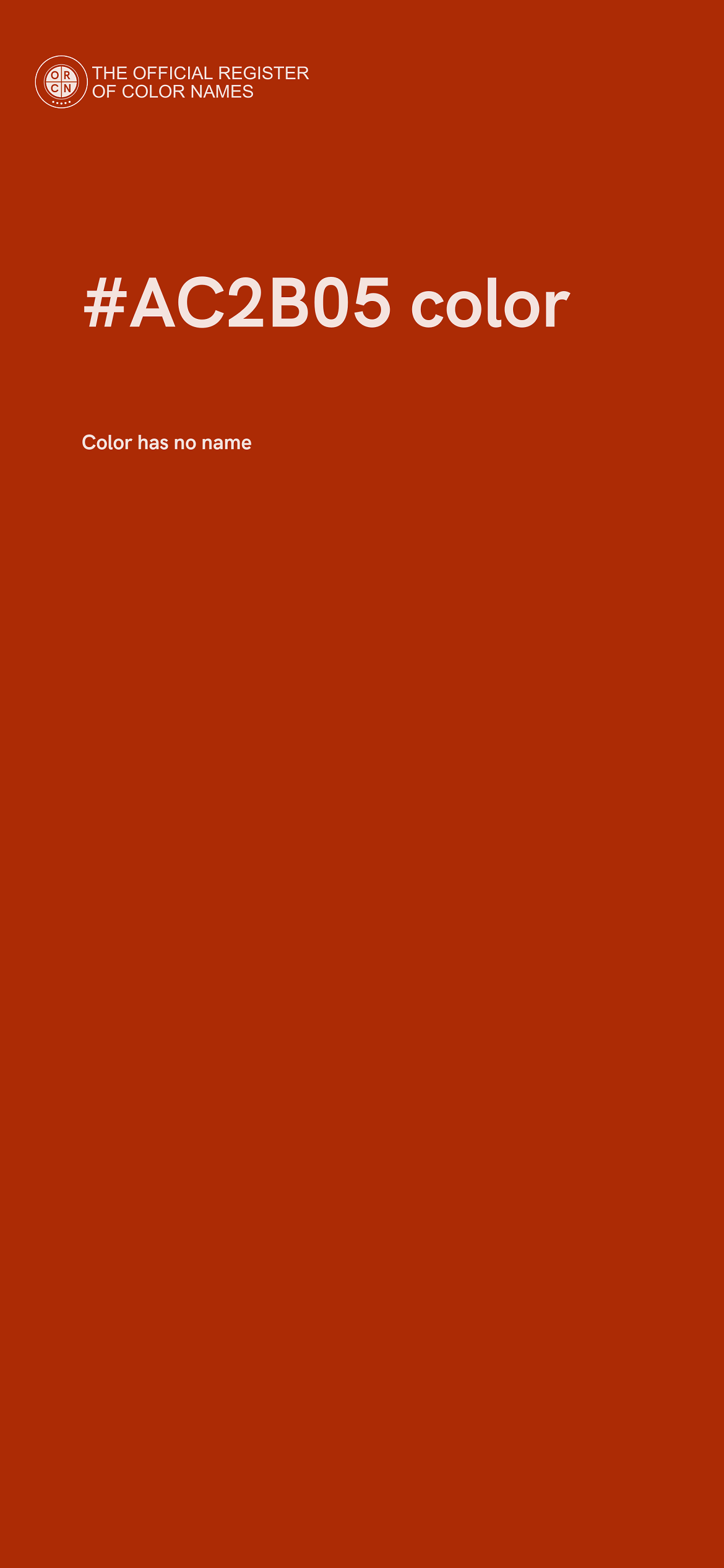 The digital color HEX #AC2B05 belongs to the Red Color Family featuring Full Saturation (Saturation Family) and Neutral (Brightness Family).