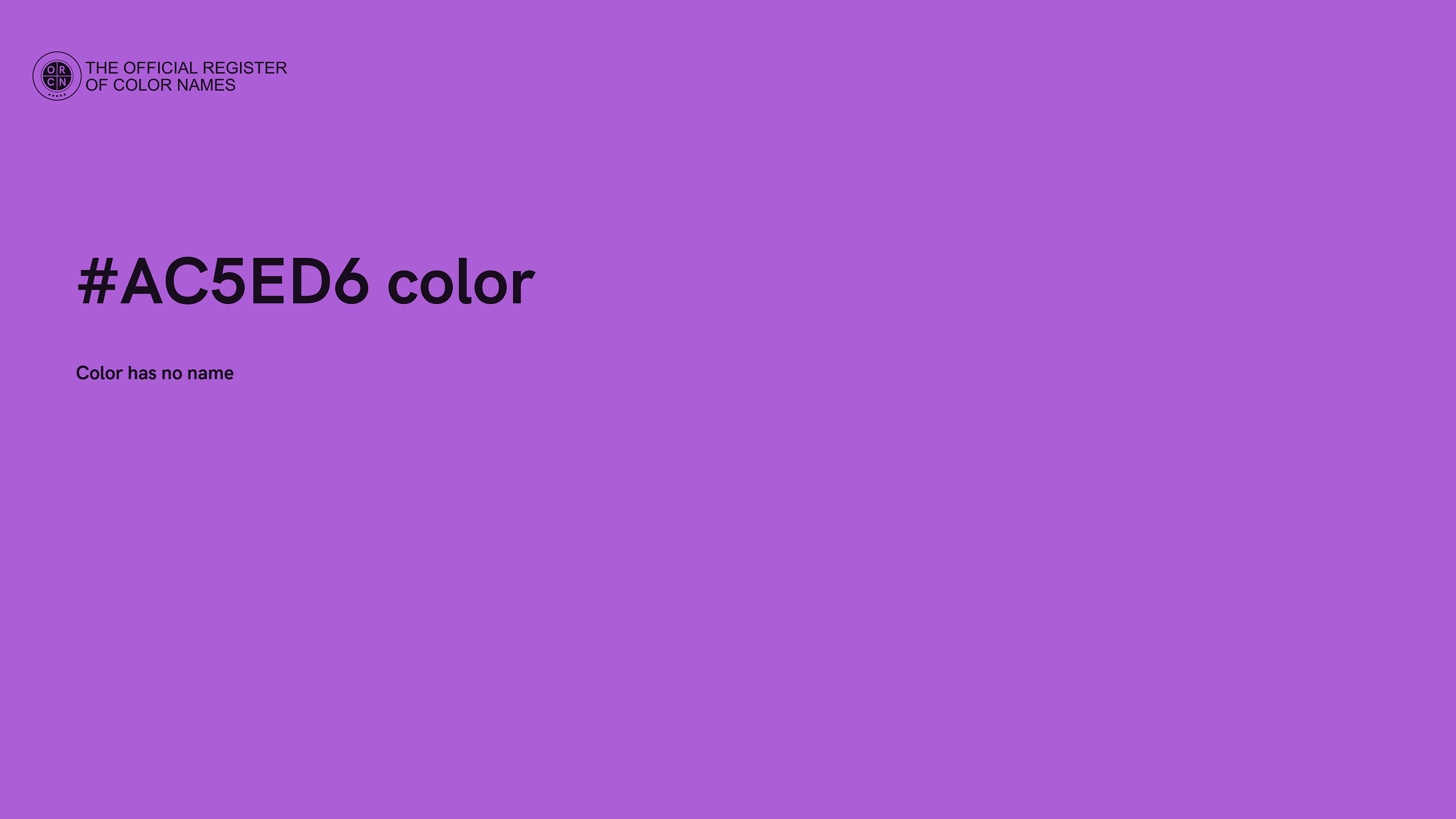 The digital color HEX #AC5ED6 belongs to the Violet Color Family featuring Moderate Saturation (Saturation Family) and Very Light (Brightness Family).