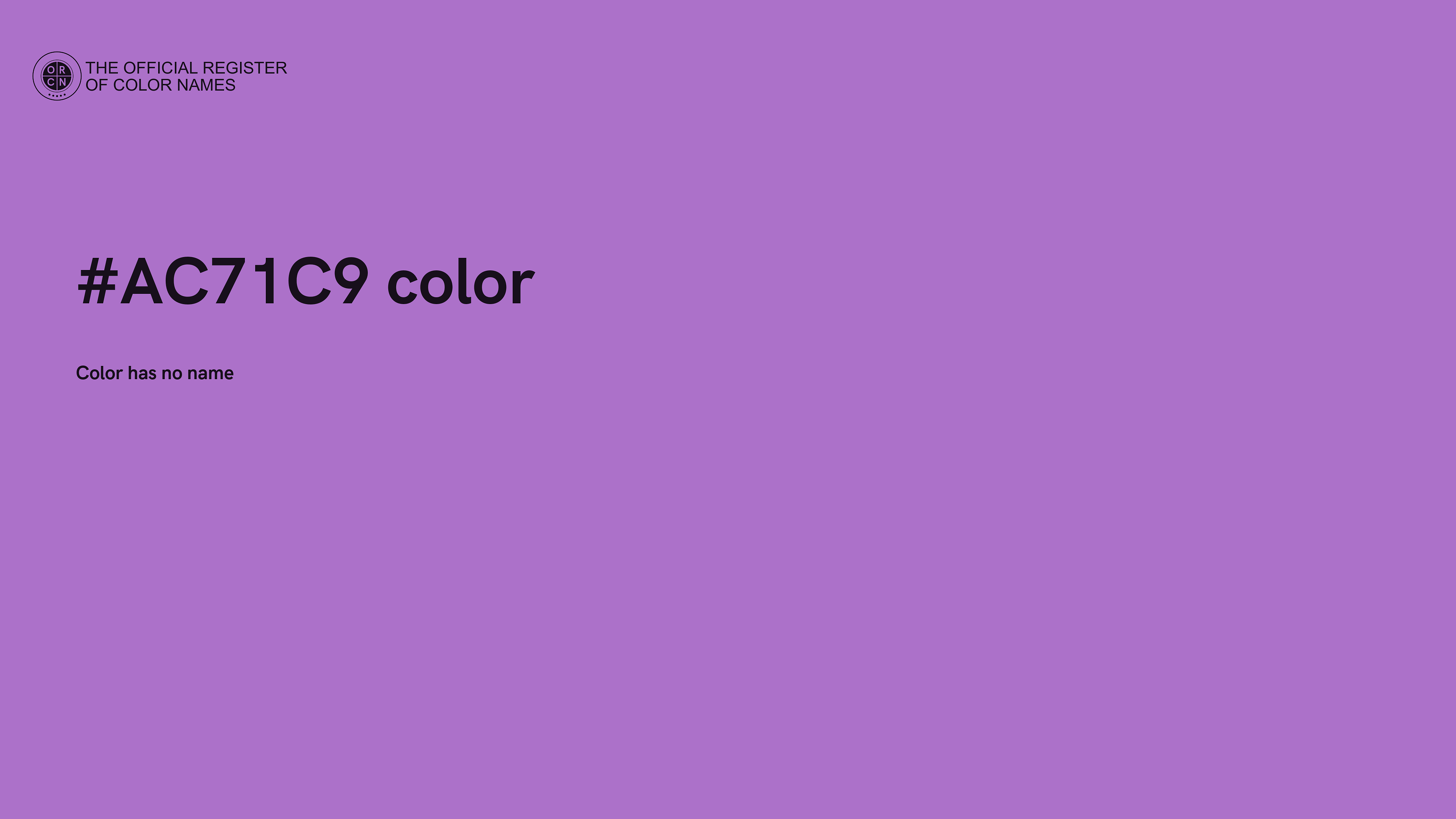 The digital color HEX #AC71C9 belongs to the Violet Color Family featuring Moderate Saturation (Saturation Family) and Very Light (Brightness Family).