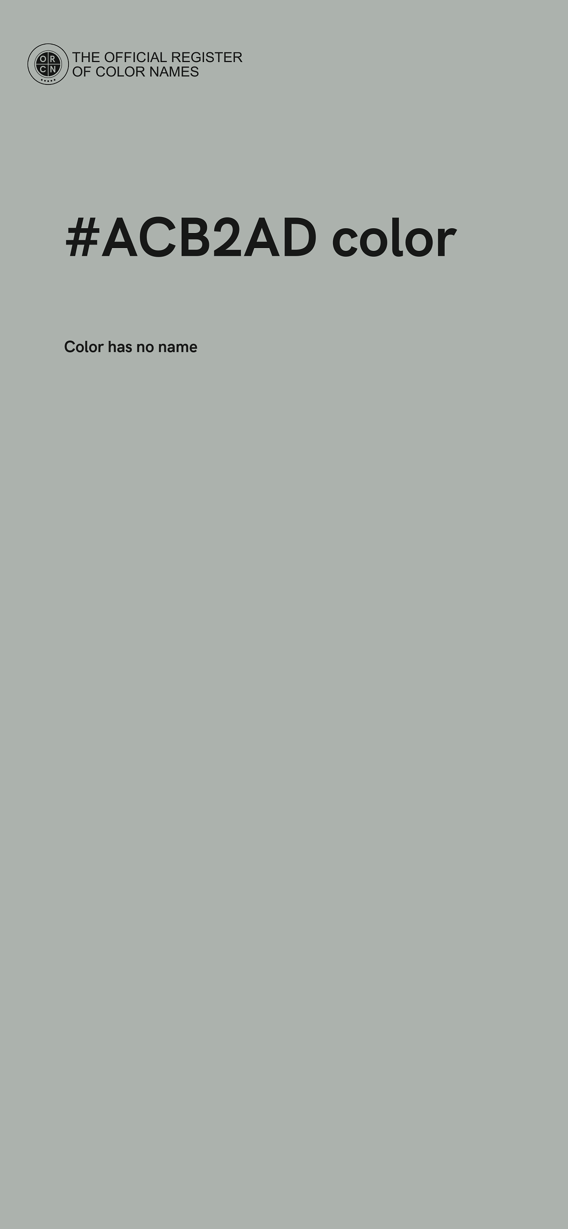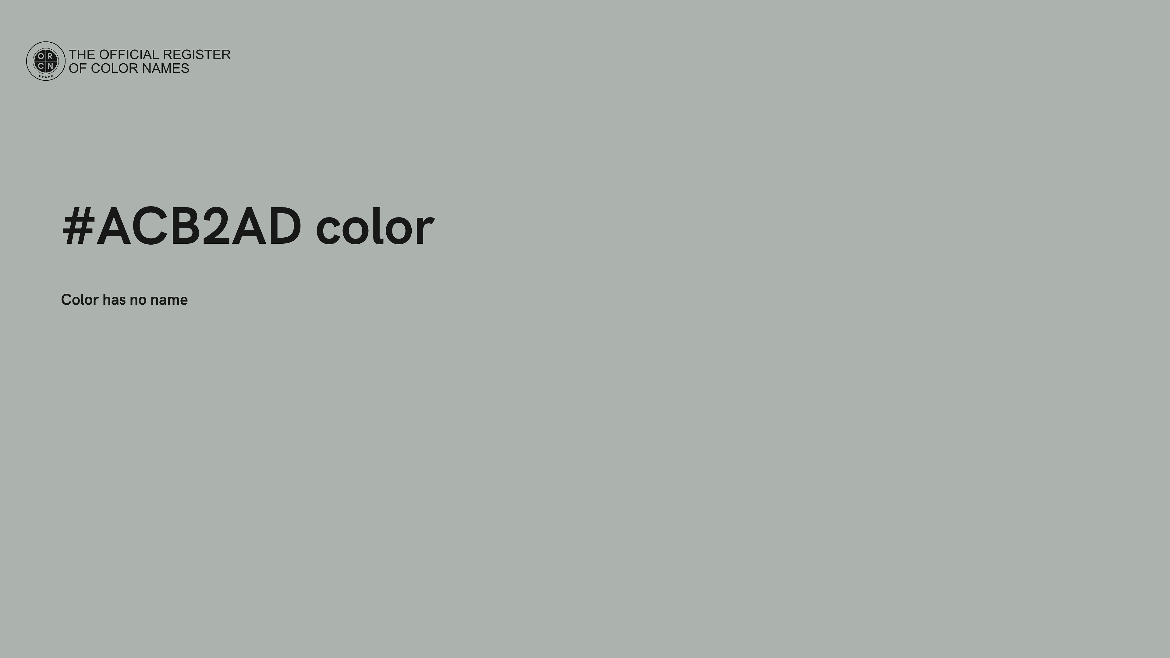 The digital color HEX #ACB2AD belongs to the Green Color Family featuring Desaturated (Saturation Family) and Very Light (Brightness Family).