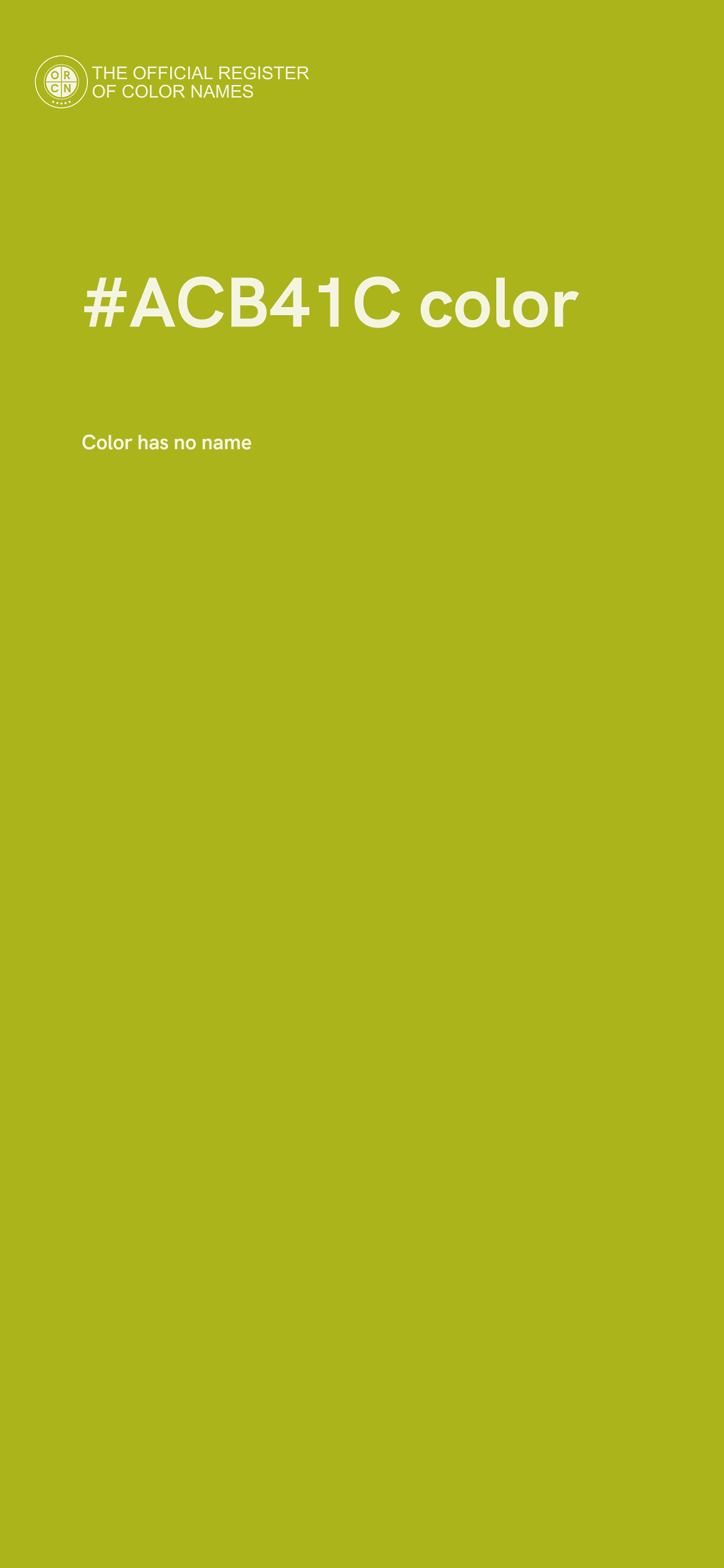 The digital color HEX #ACB41C belongs to the Yellow Color Family featuring High Saturation (Saturation Family) and Light (Brightness Family).