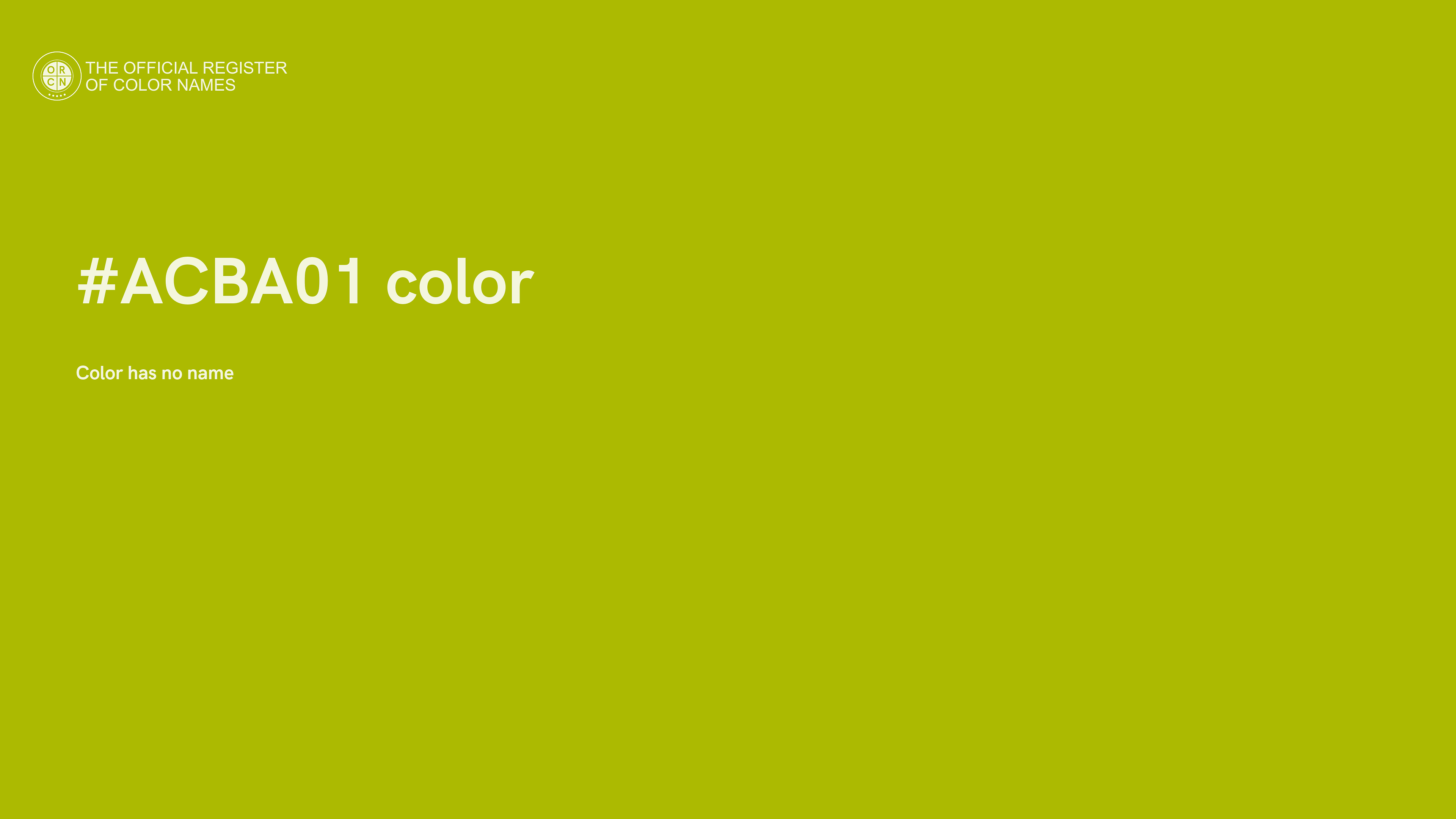 For printing in non digital world, #ACBA01 is represented in CMYK as 5 Cyan, 0 Magenta, 73 Yellow, and 27 Black (Key) (C:5 M:0 Y:73 K:27).