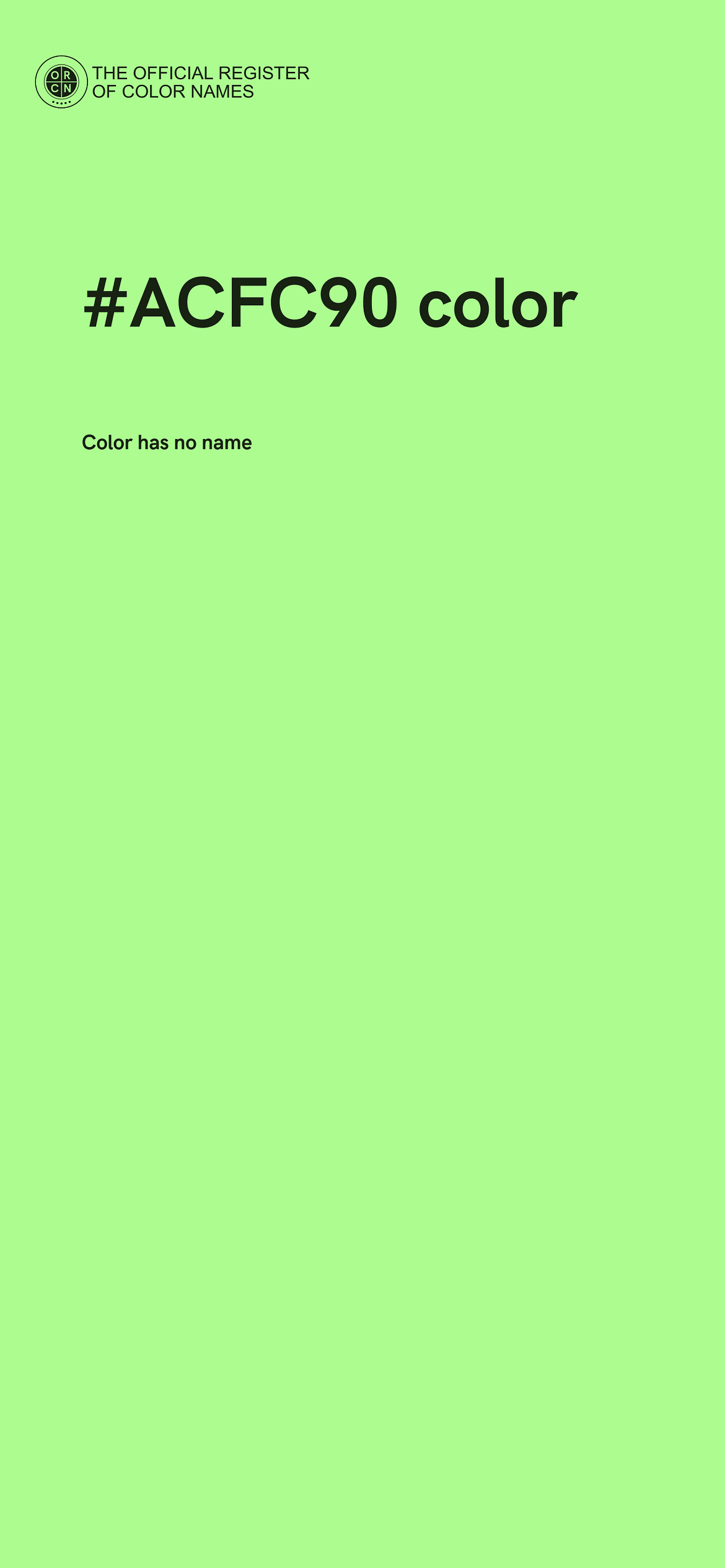 The digital color HEX #ACFC90 belongs to the Chartreuse Color Family featuring Full Saturation (Saturation Family) and Very Light (Brightness Family).
