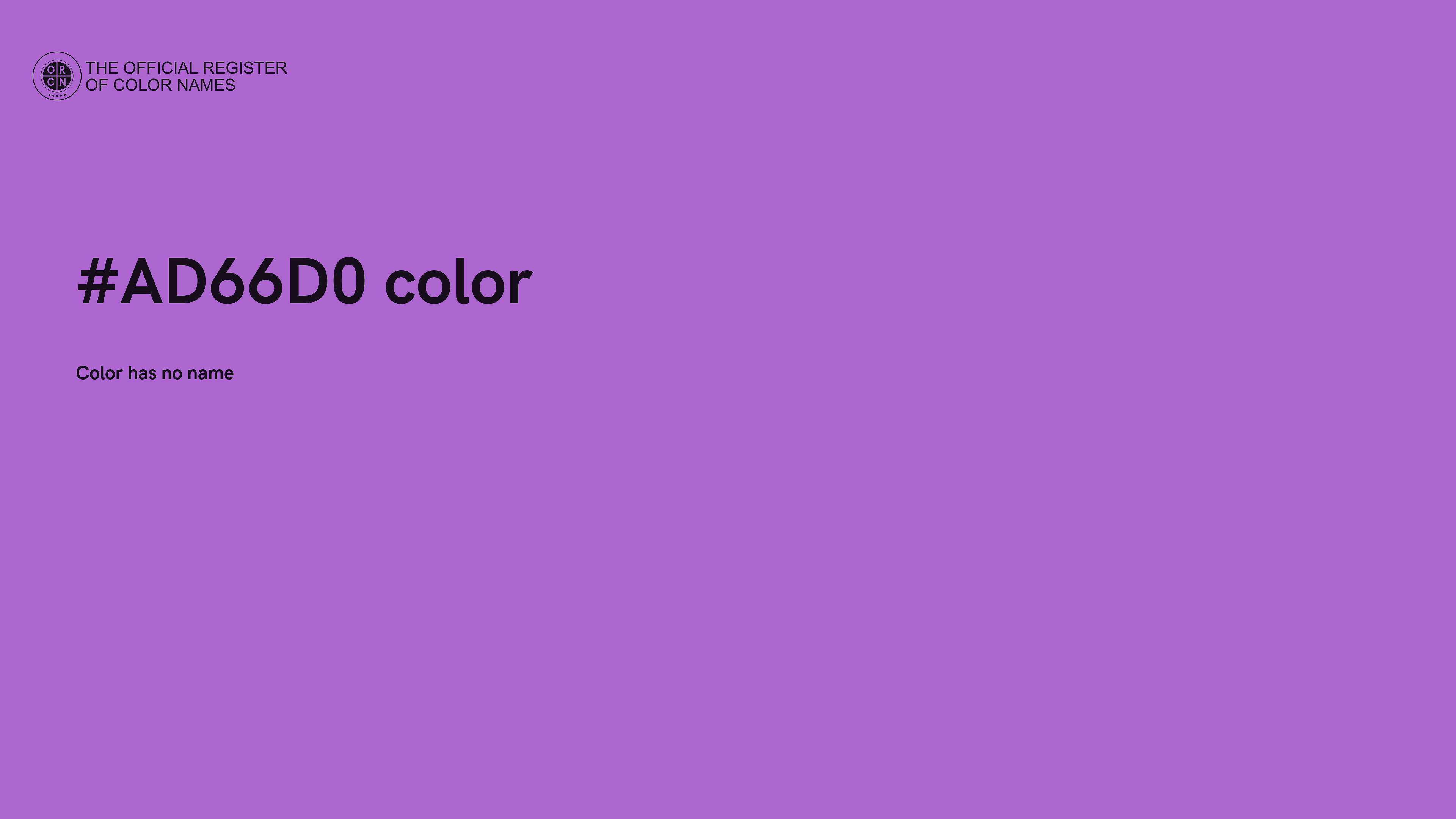 The digital color HEX #AD66D0 belongs to the Violet Color Family featuring Moderate Saturation (Saturation Family) and Very Light (Brightness Family).