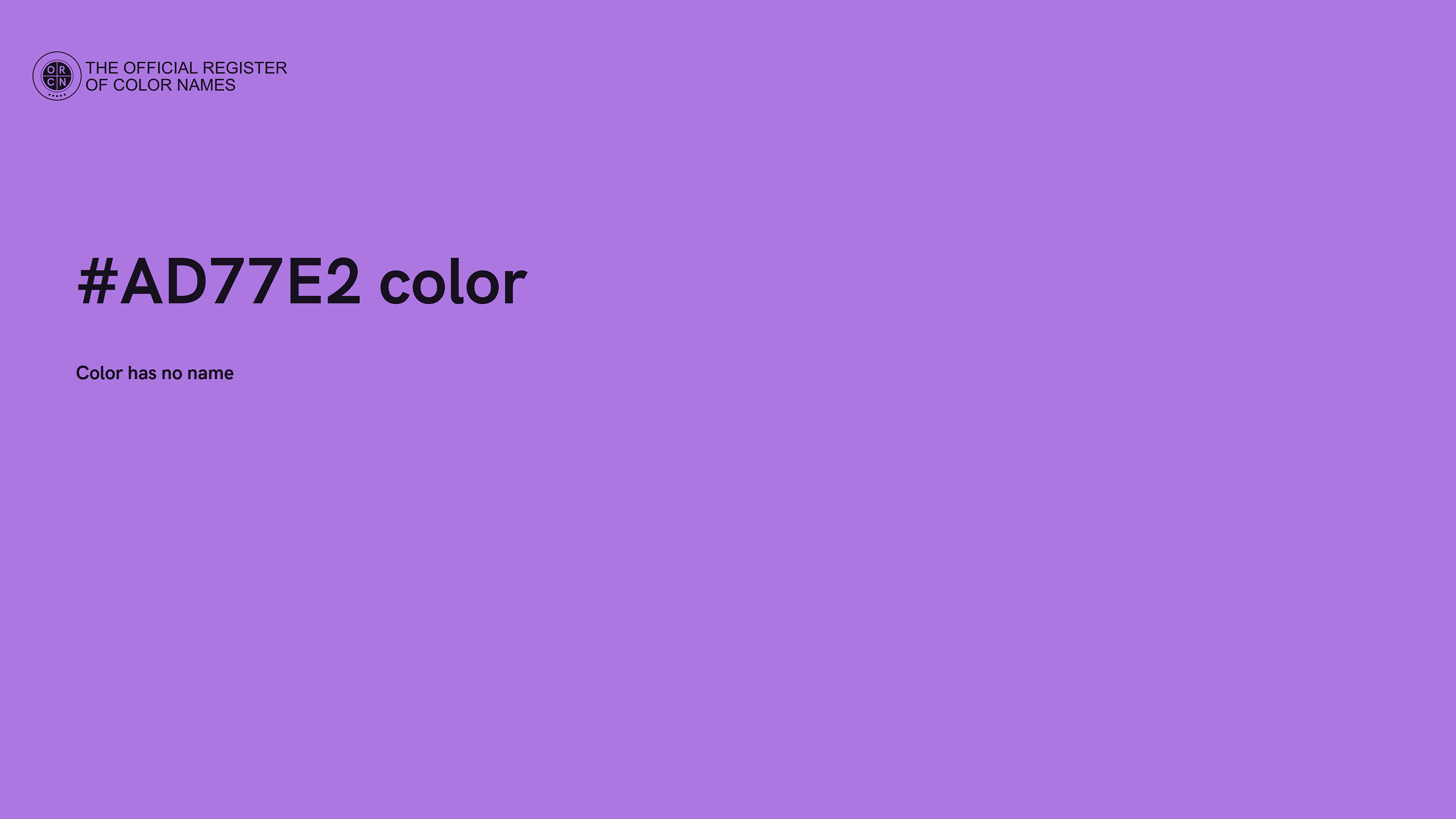 The digital color HEX #AD77E2 belongs to the Violet Color Family featuring High Saturation (Saturation Family) and Very Light (Brightness Family).
