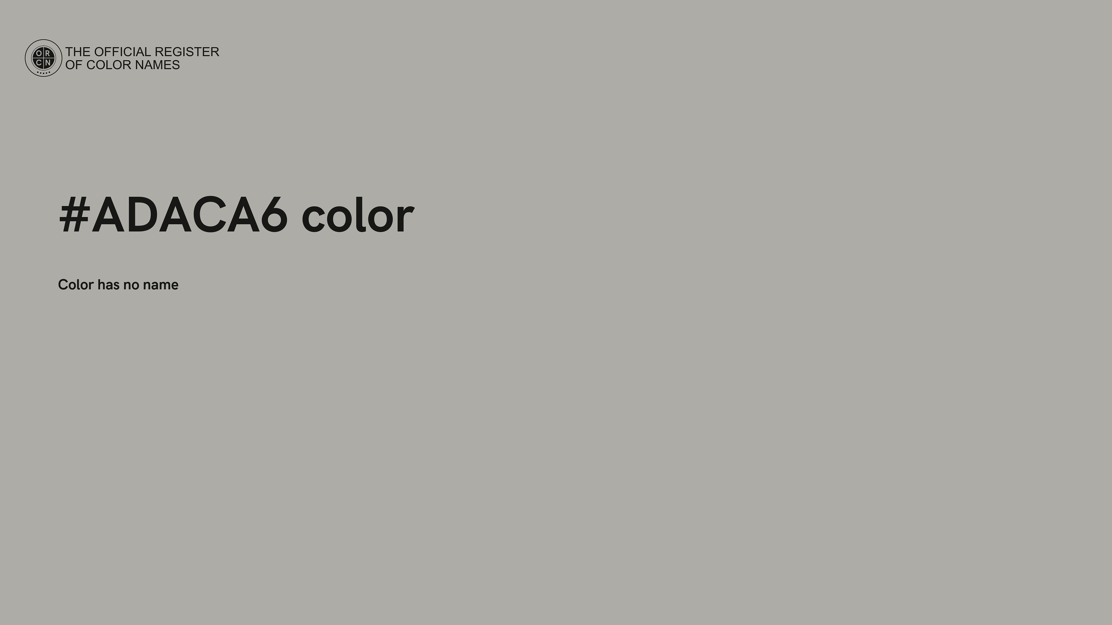 The digital color HEX #ADACA6 belongs to the Yellow Color Family featuring Desaturated (Saturation Family) and Very Light (Brightness Family).