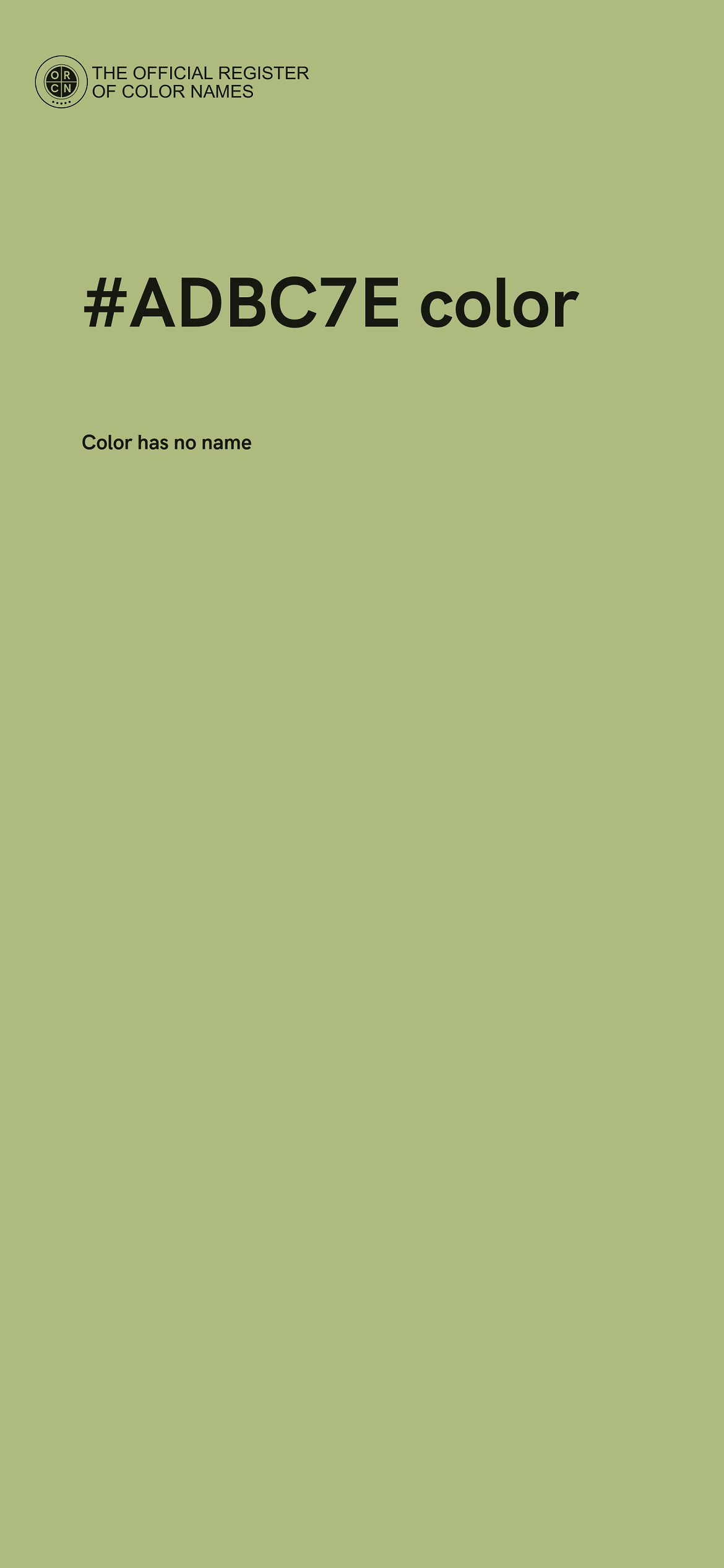 The digital color HEX #ADBC7E belongs to the Chartreuse Color Family featuring Mild Saturation (Saturation Family) and Very Light (Brightness Family).