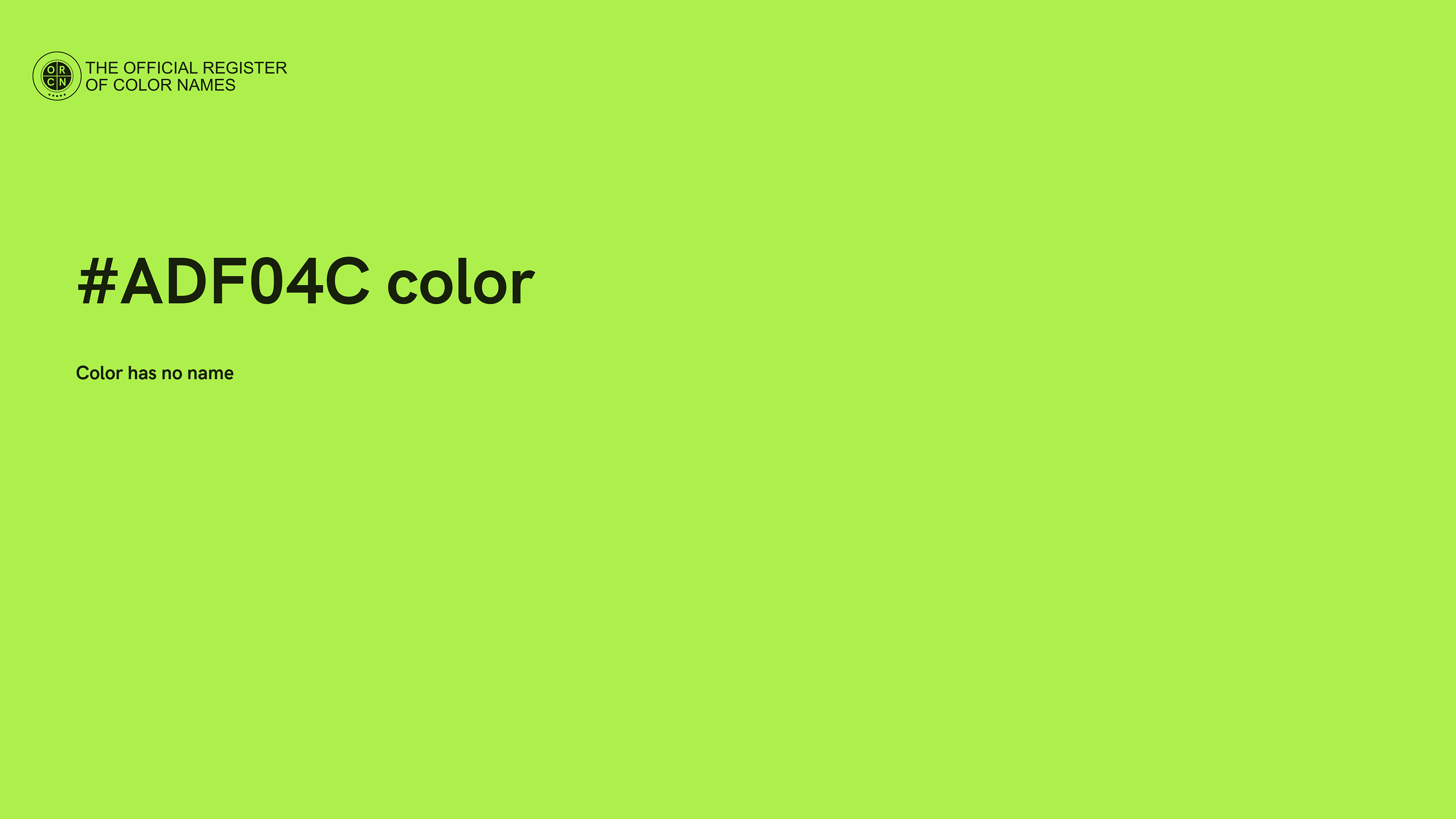 The digital color HEX #ADF04C belongs to the Chartreuse Color Family featuring Full Saturation (Saturation Family) and Very Light (Brightness Family).