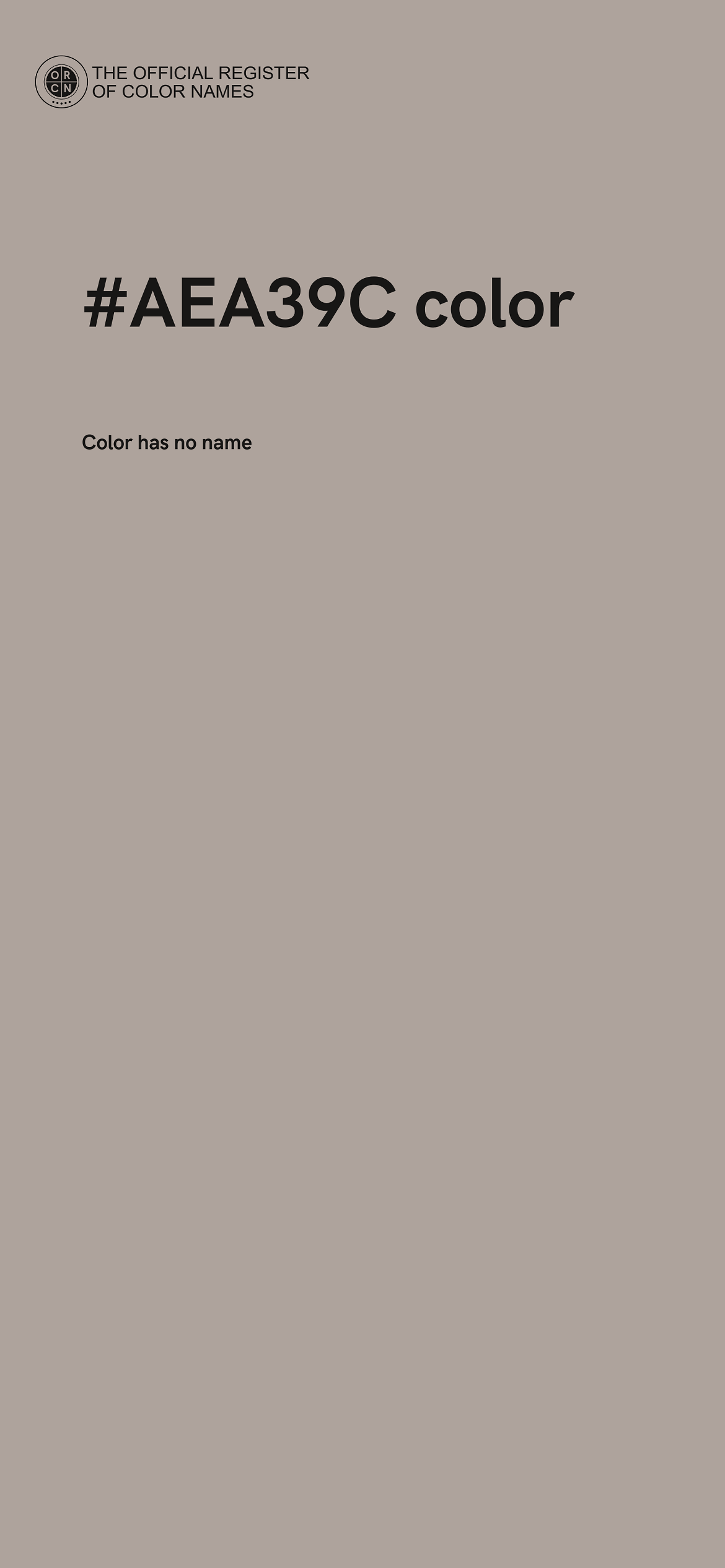 For printing in non digital world, #AEA39C is represented in CMYK as 0 Cyan, 4 Magenta, 7 Yellow, and 32 Black (Key) (C:0 M:4 Y:7 K:32).