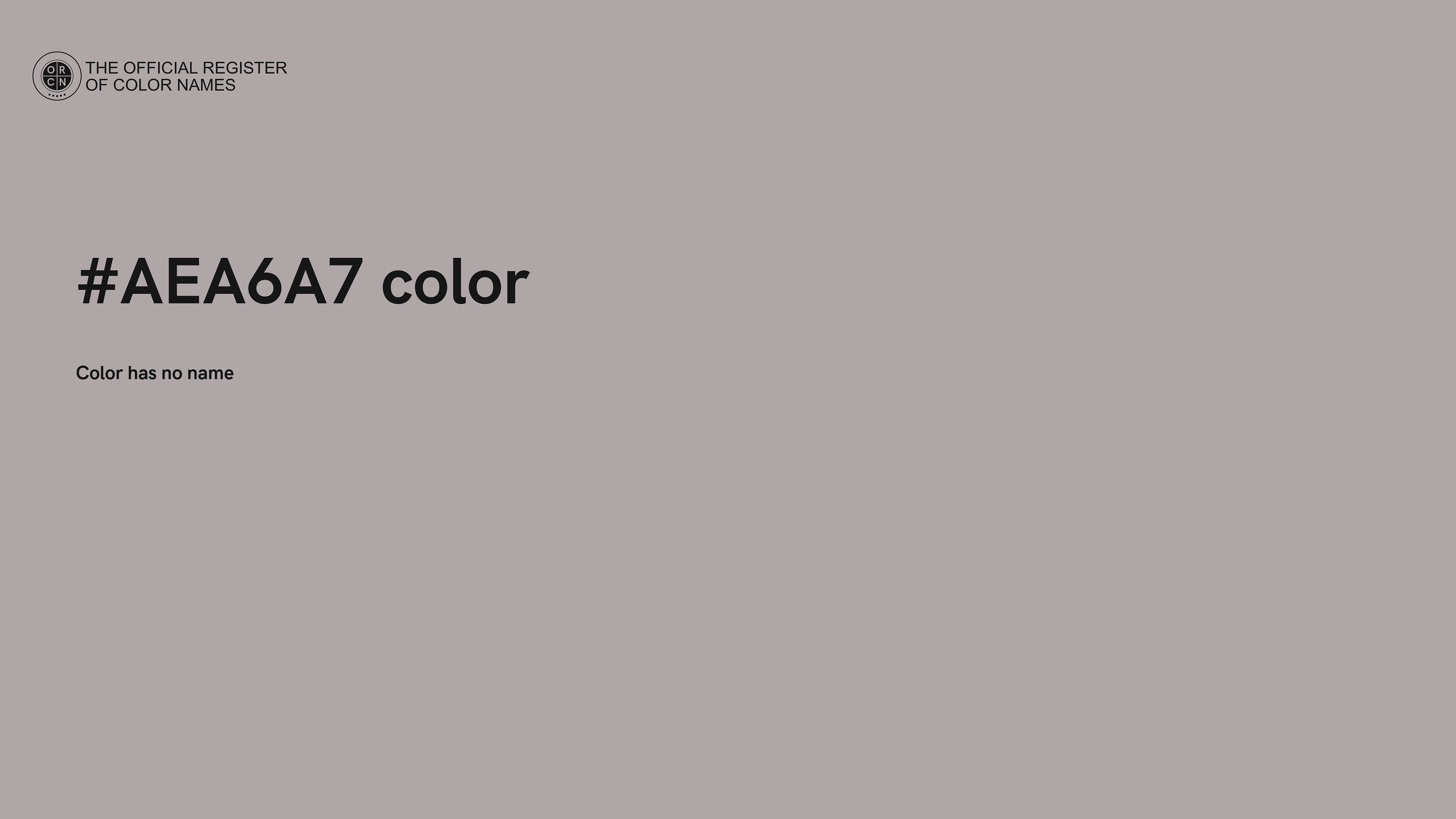 The digital color HEX #AEA6A7 belongs to the Red Color Family featuring Desaturated (Saturation Family) and Very Light (Brightness Family).