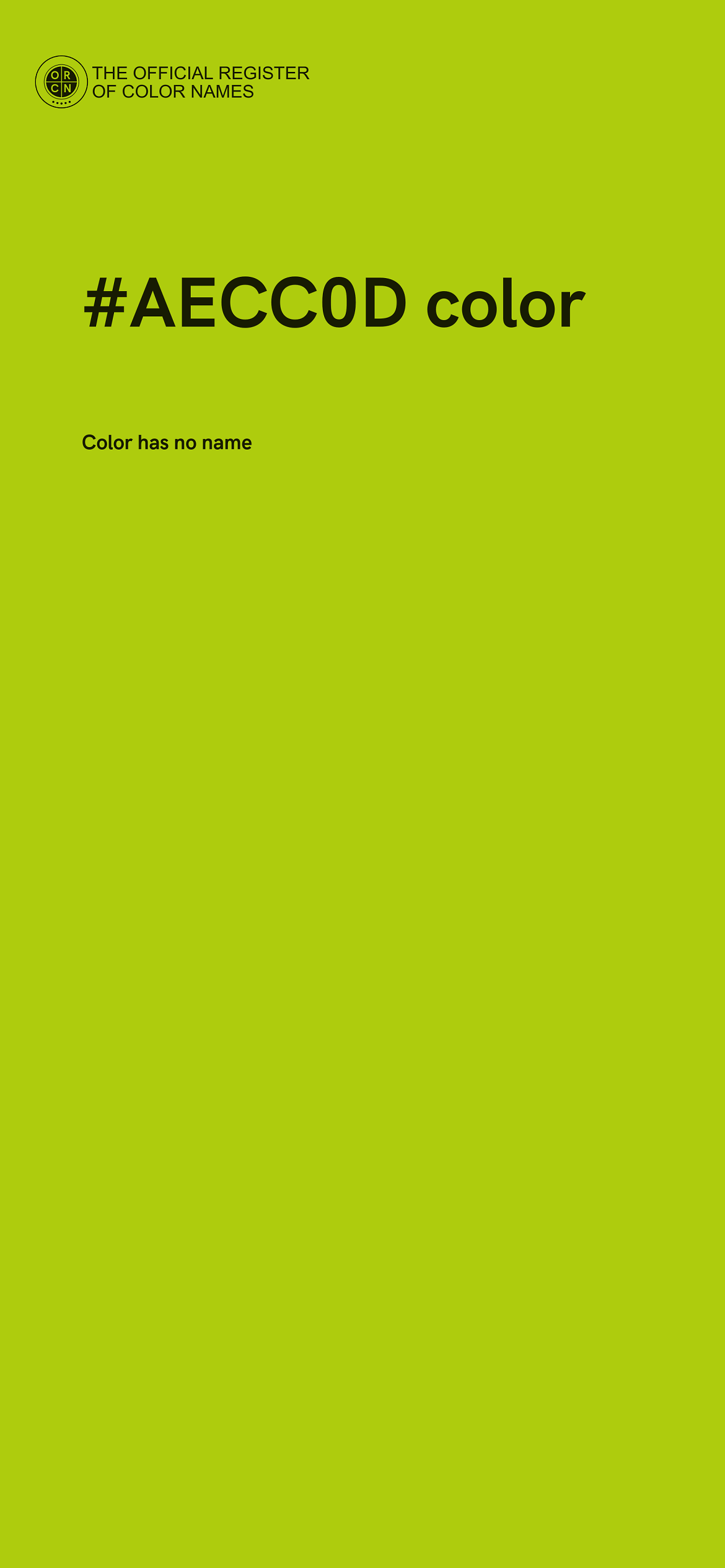 For printing in non digital world, #AECC0D is represented in CMYK as 12 Cyan, 0 Magenta, 75 Yellow, and 20 Black (Key) (C:12 M:0 Y:75 K:20).