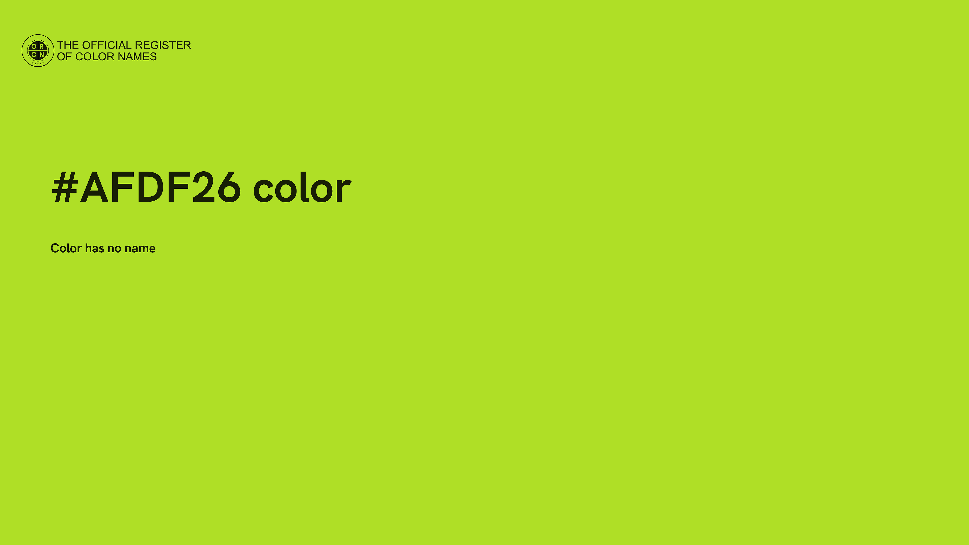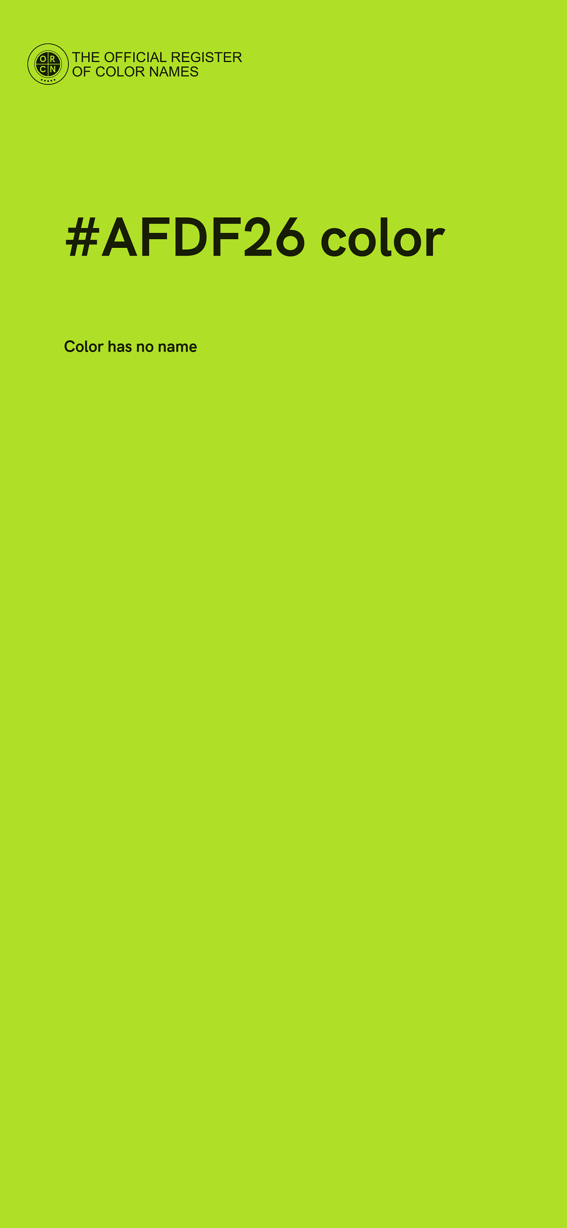 The digital color HEX #AFDF26 belongs to the Chartreuse Color Family featuring High Saturation (Saturation Family) and Light (Brightness Family).