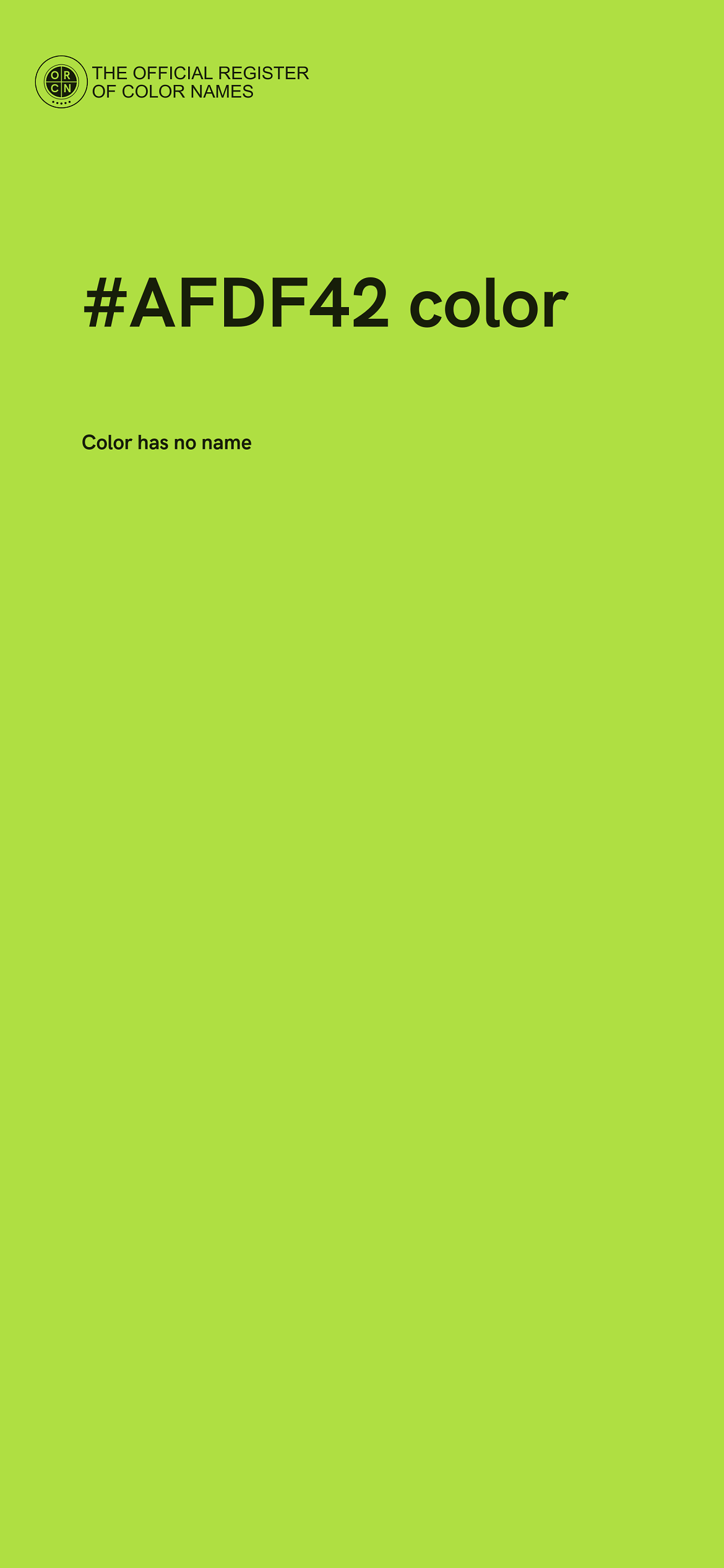 The digital color HEX #AFDF42 belongs to the Chartreuse Color Family featuring High Saturation (Saturation Family) and Light (Brightness Family).