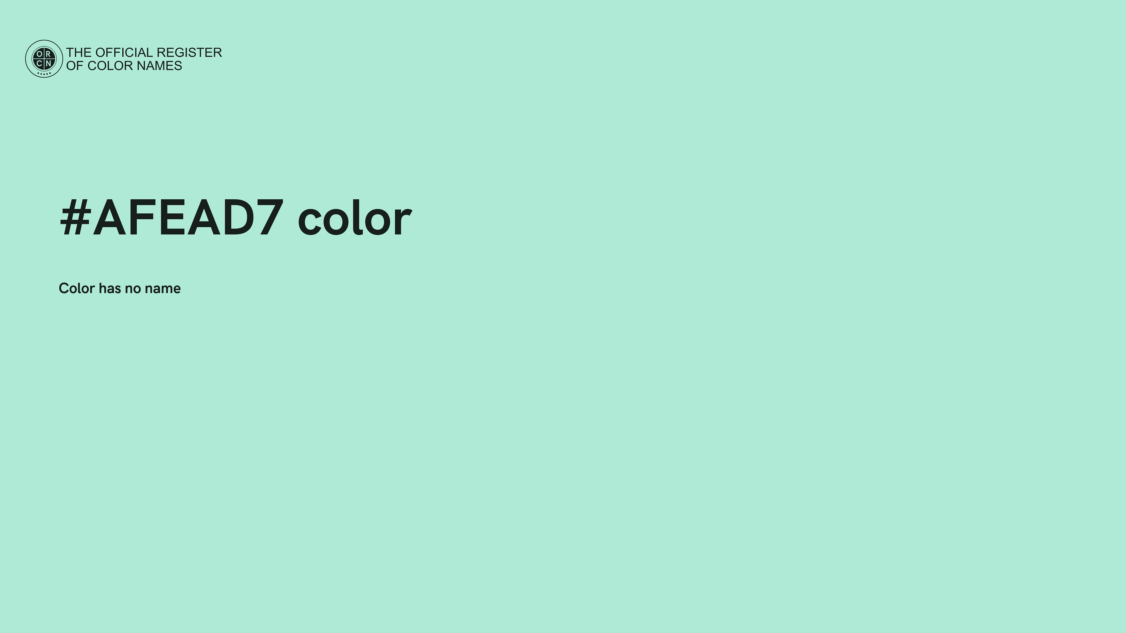 The digital color HEX #AFEAD7 belongs to the Spring Green Color Family featuring Moderate Saturation (Saturation Family) and Very Light (Brightness Family).