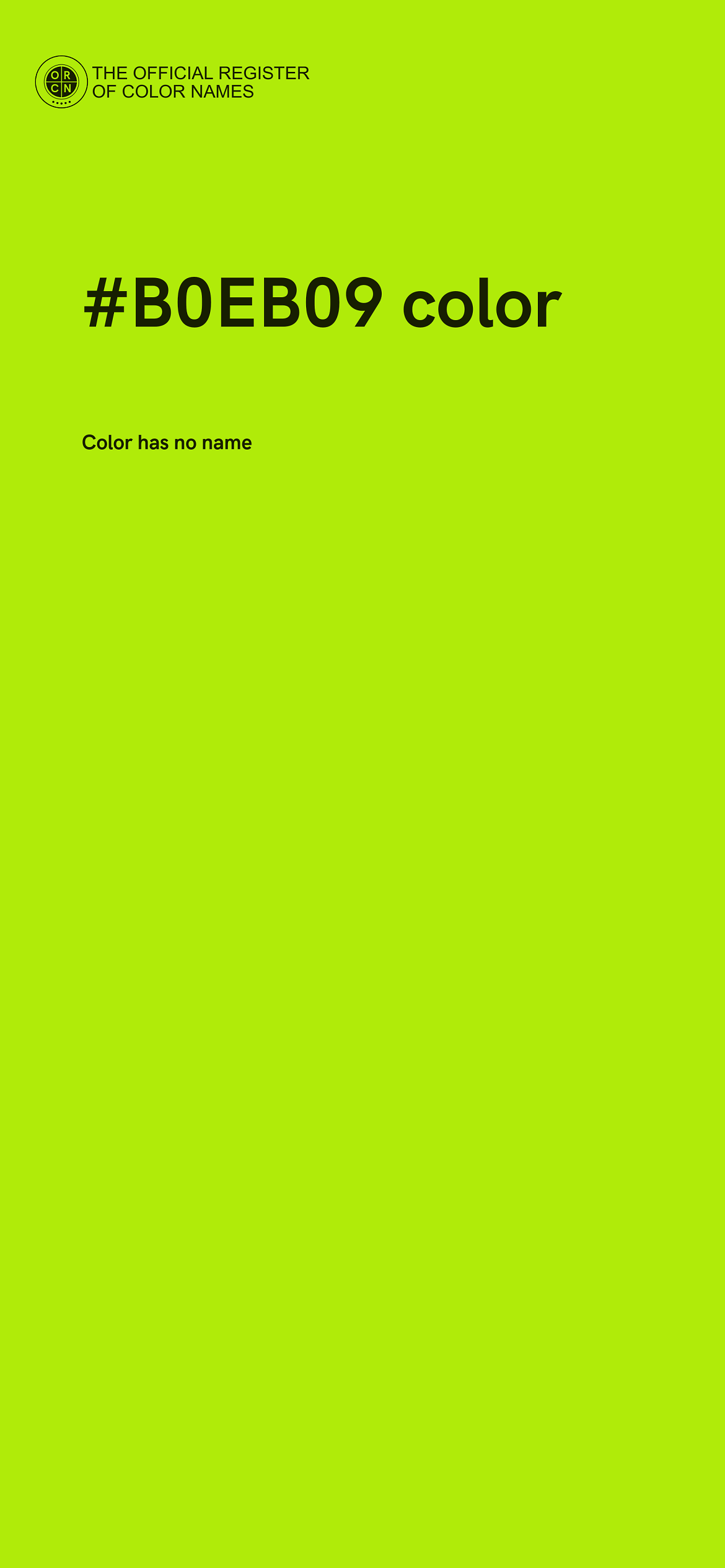 For printing in non digital world, #B0EB09 is represented in CMYK as 23 Cyan, 0 Magenta, 89 Yellow, and 8 Black (Key) (C:23 M:0 Y:89 K:8).