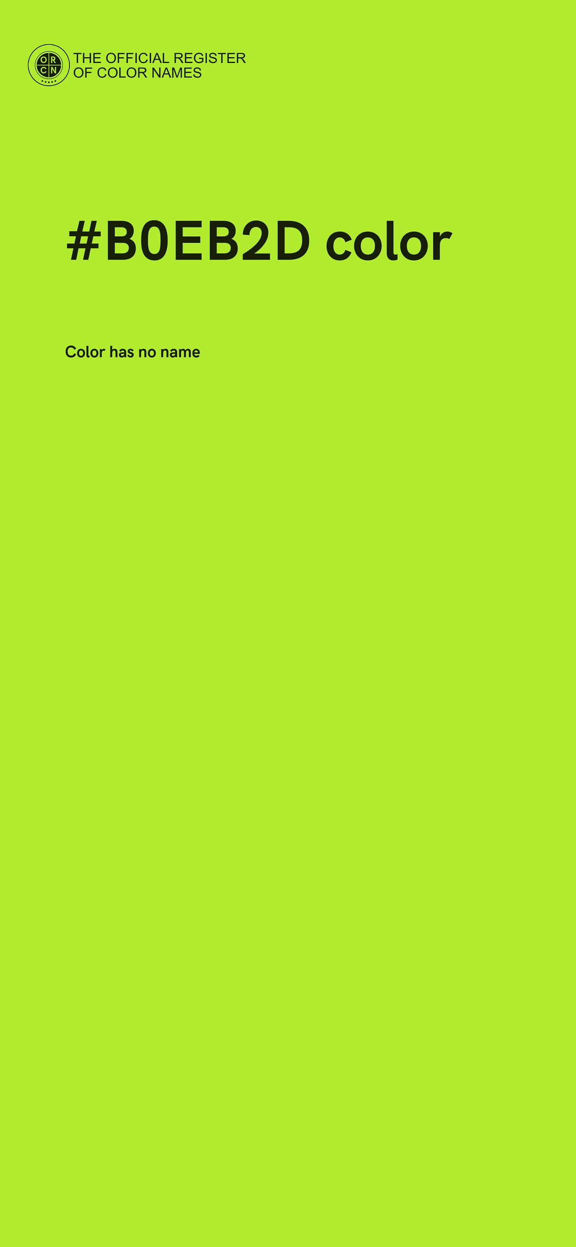 For printing in non digital world, #B0EB2D is represented in CMYK as 23 Cyan, 0 Magenta, 75 Yellow, and 8 Black (Key) (C:23 M:0 Y:75 K:8).
