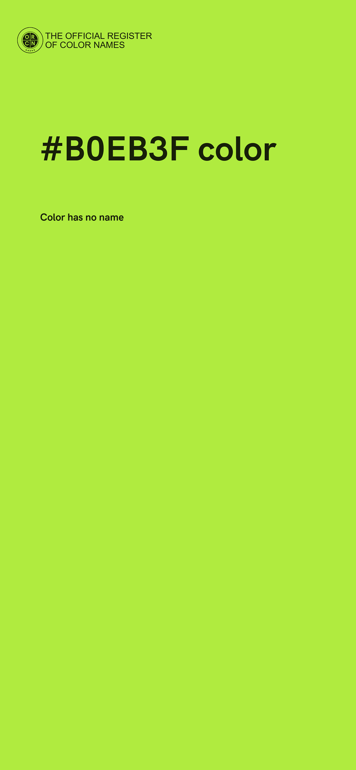 The digital color HEX #B0EB3F belongs to the Chartreuse Color Family featuring High Saturation (Saturation Family) and Light (Brightness Family).
