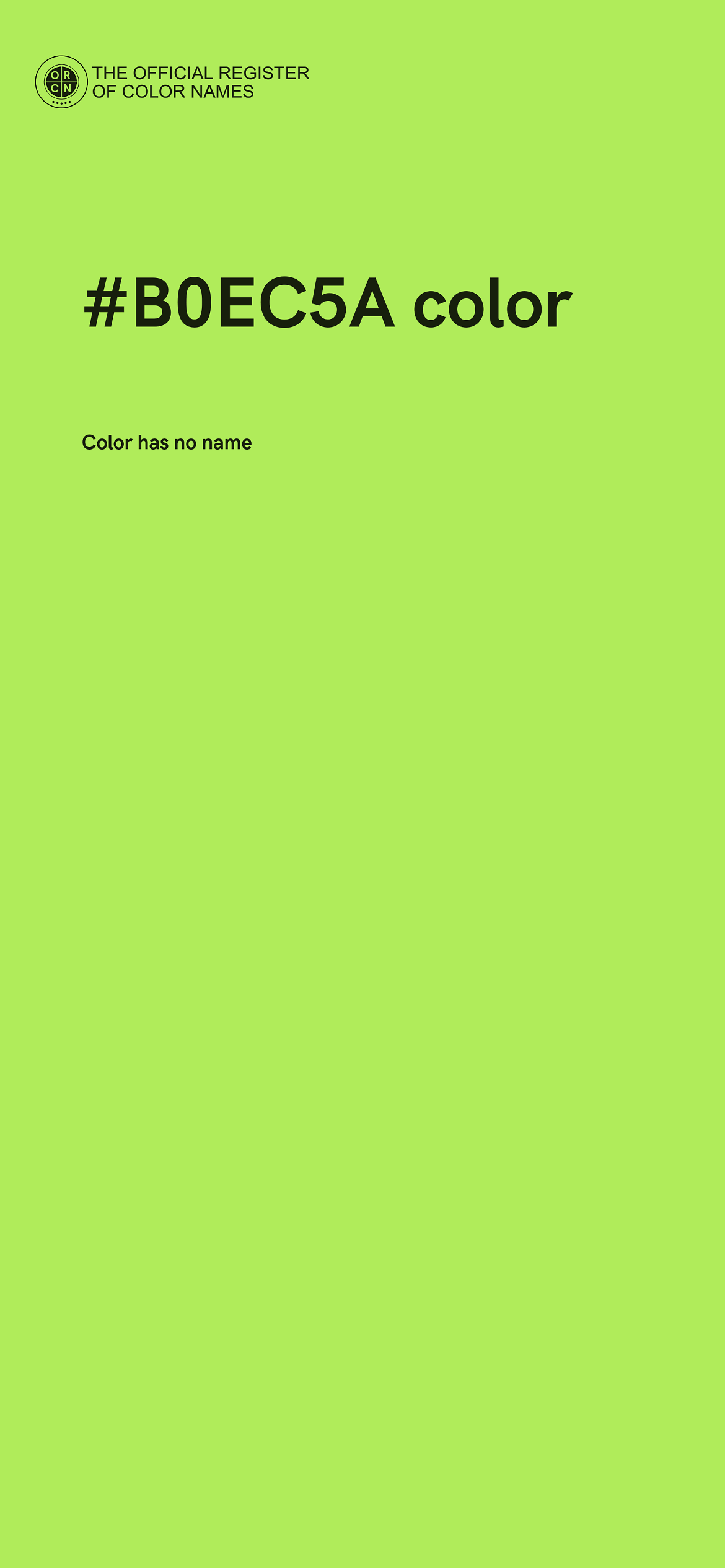 For printing in non digital world, #B0EC5A is represented in CMYK as 24 Cyan, 0 Magenta, 57 Yellow, and 7 Black (Key) (C:24 M:0 Y:57 K:7).