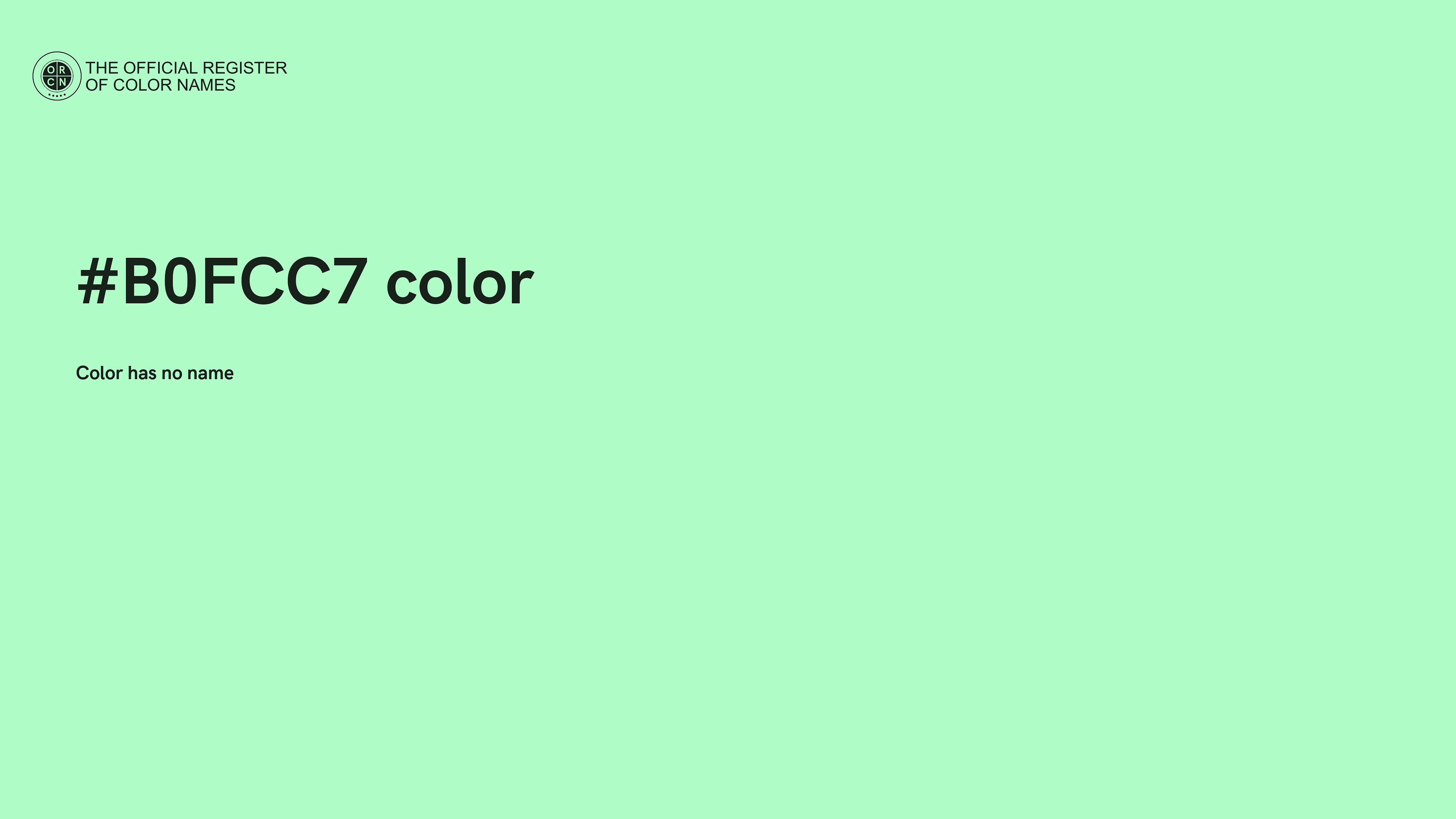 For printing in non digital world, #B0FCC7 is represented in CMYK as 30 Cyan, 0 Magenta, 21 Yellow, and 1 Black (Key) (C:30 M:0 Y:21 K:1).