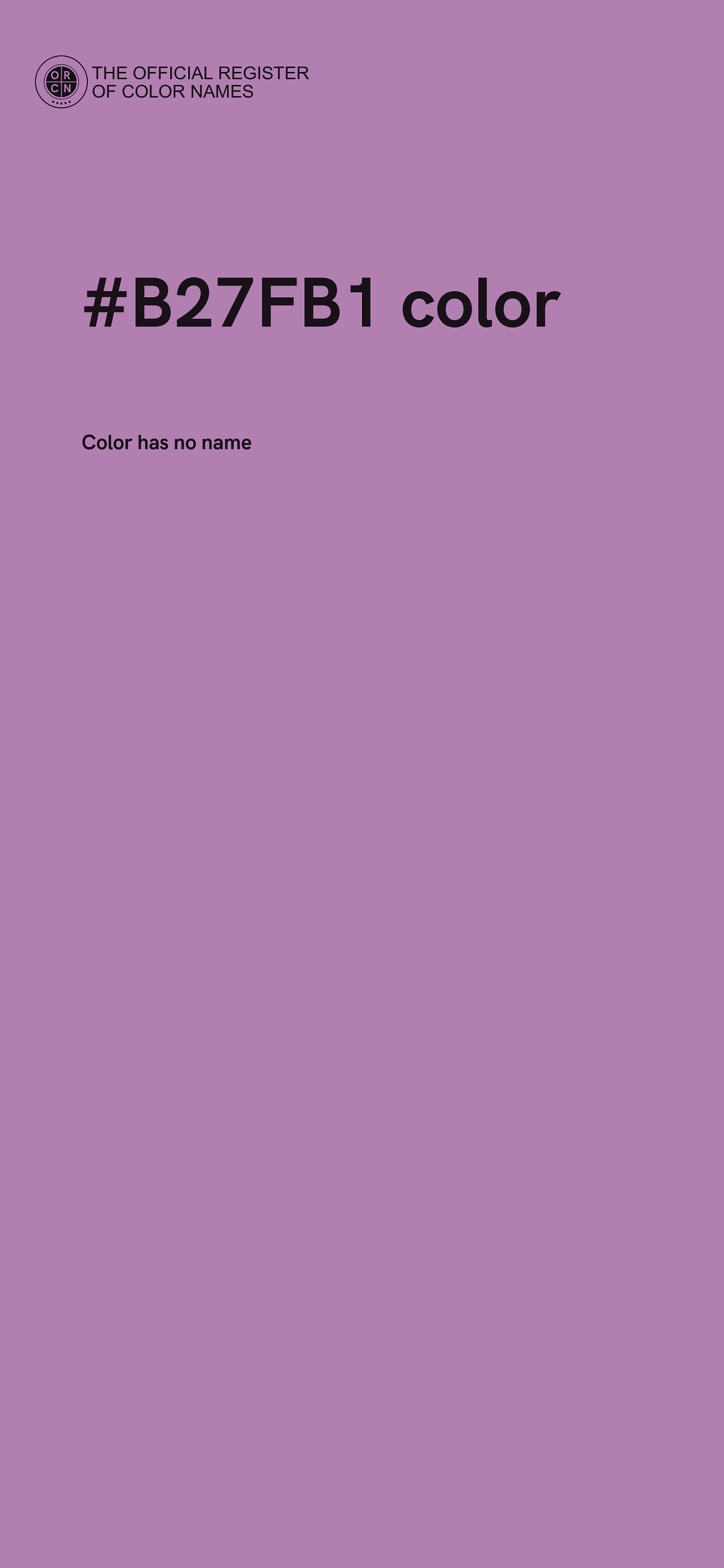 The digital color HEX #B27FB1 belongs to the Magenta Color Family featuring Mild Saturation (Saturation Family) and Very Light (Brightness Family).