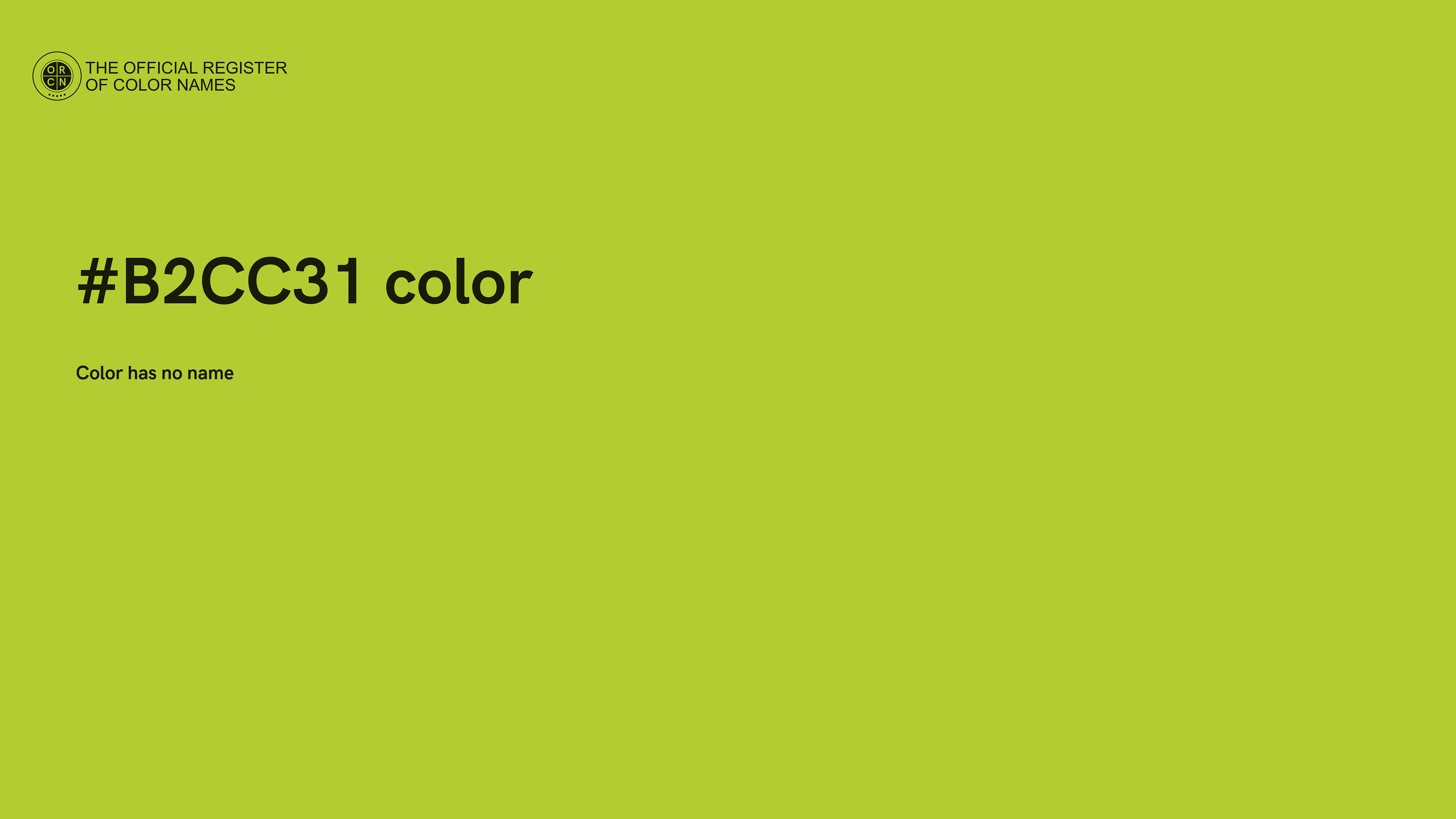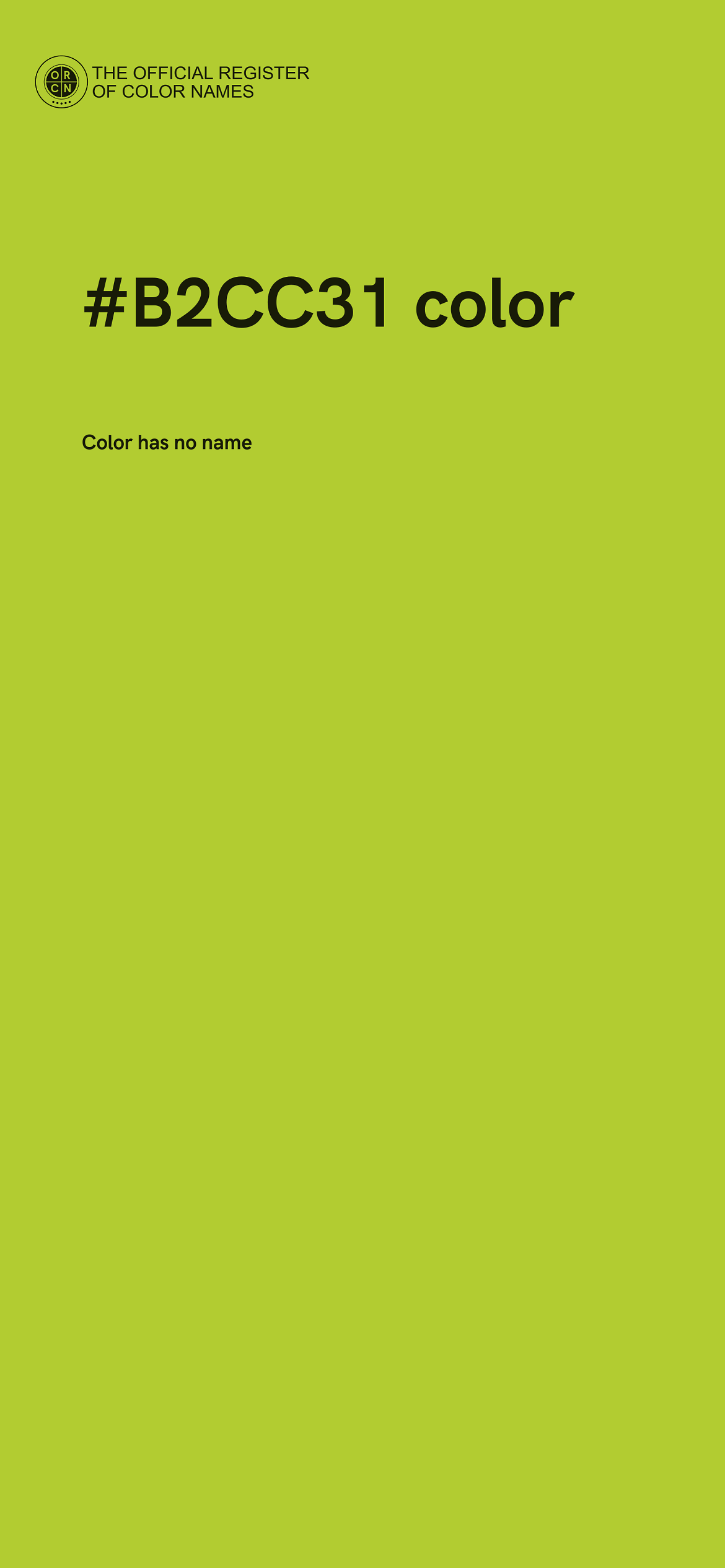 The digital color HEX #B2CC31 belongs to the Yellow Color Family featuring High Saturation (Saturation Family) and Light (Brightness Family).