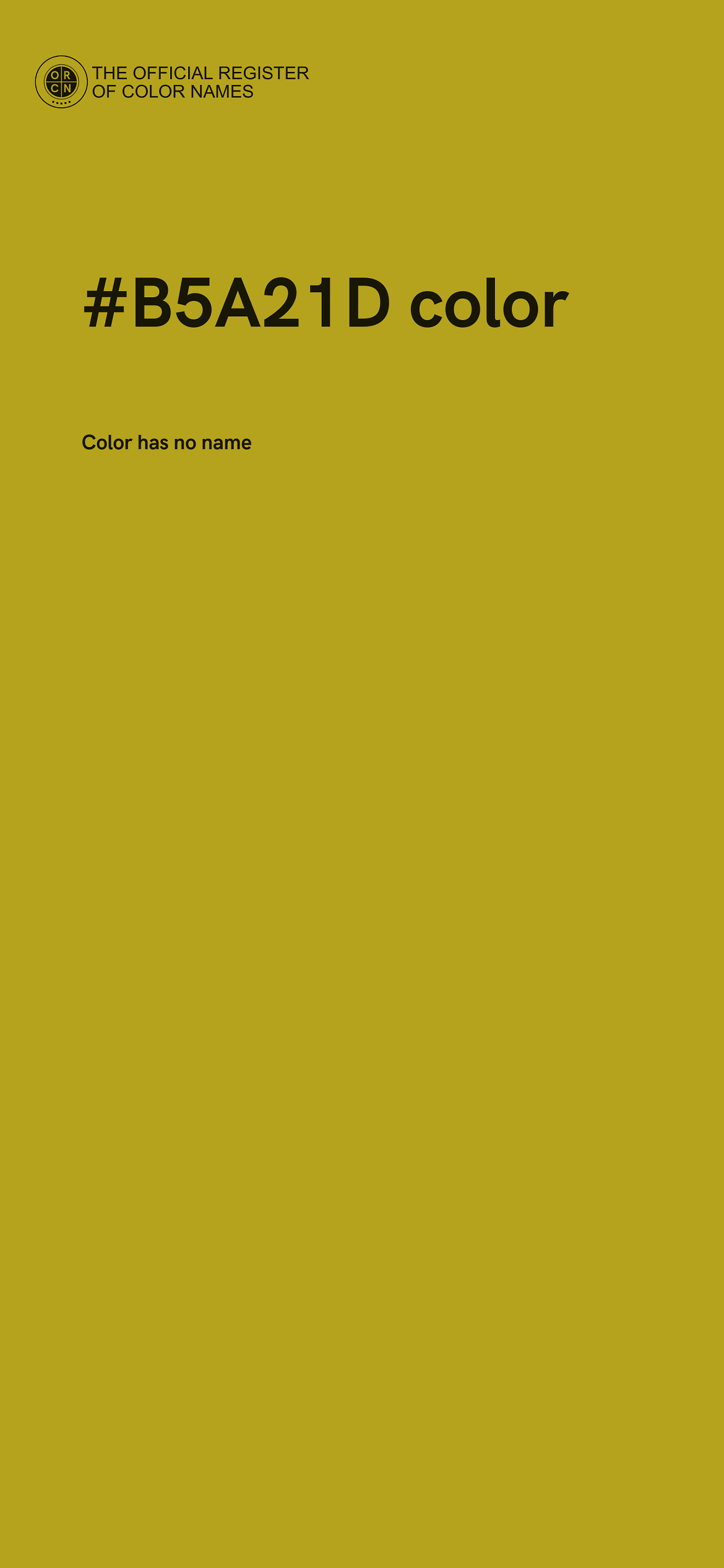 The digital color HEX #B5A21D belongs to the Yellow Color Family featuring High Saturation (Saturation Family) and Light (Brightness Family).