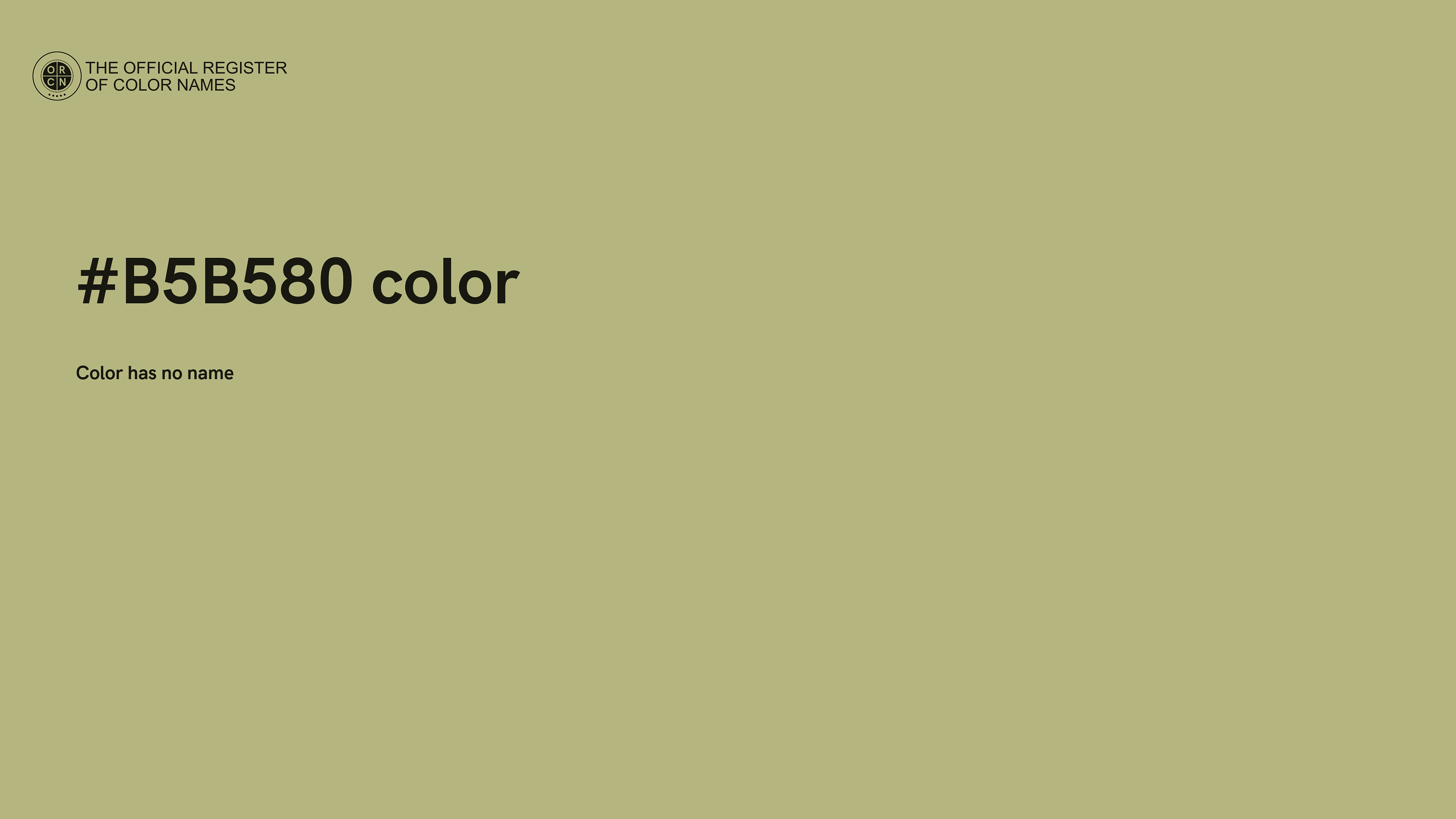 For printing in non digital world, #B5B580 is represented in CMYK as 0 Cyan, 0 Magenta, 21 Yellow, and 29 Black (Key) (C:0 M:0 Y:21 K:29).