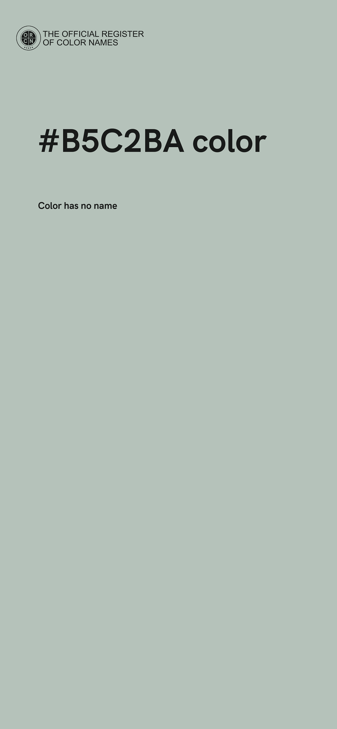 The digital color HEX #B5C2BA belongs to the Spring Green Color Family featuring Low Saturation (Saturation Family) and Very Light (Brightness Family).