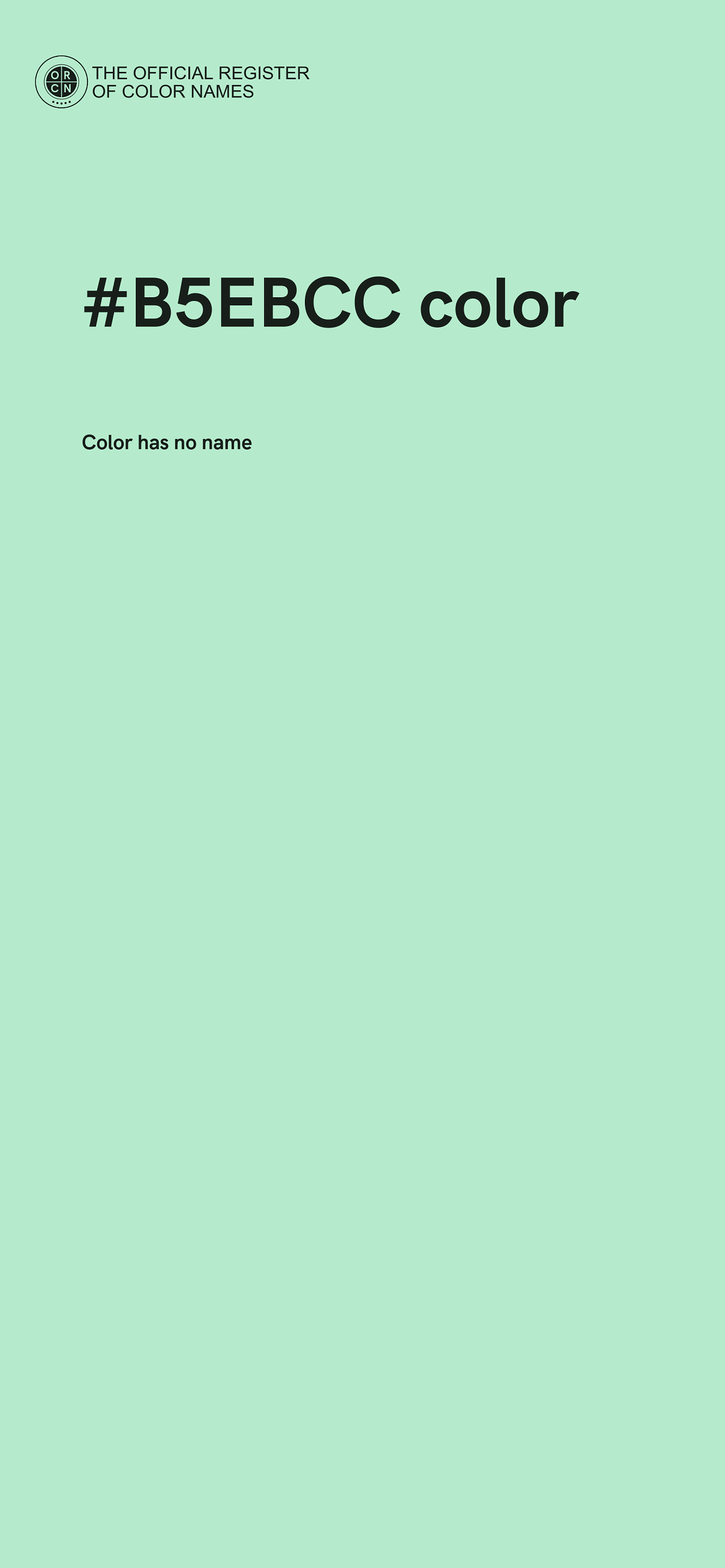 For printing in non digital world, #B5EBCC is represented in CMYK as 21 Cyan, 0 Magenta, 12 Yellow, and 8 Black (Key) (C:21 M:0 Y:12 K:8).