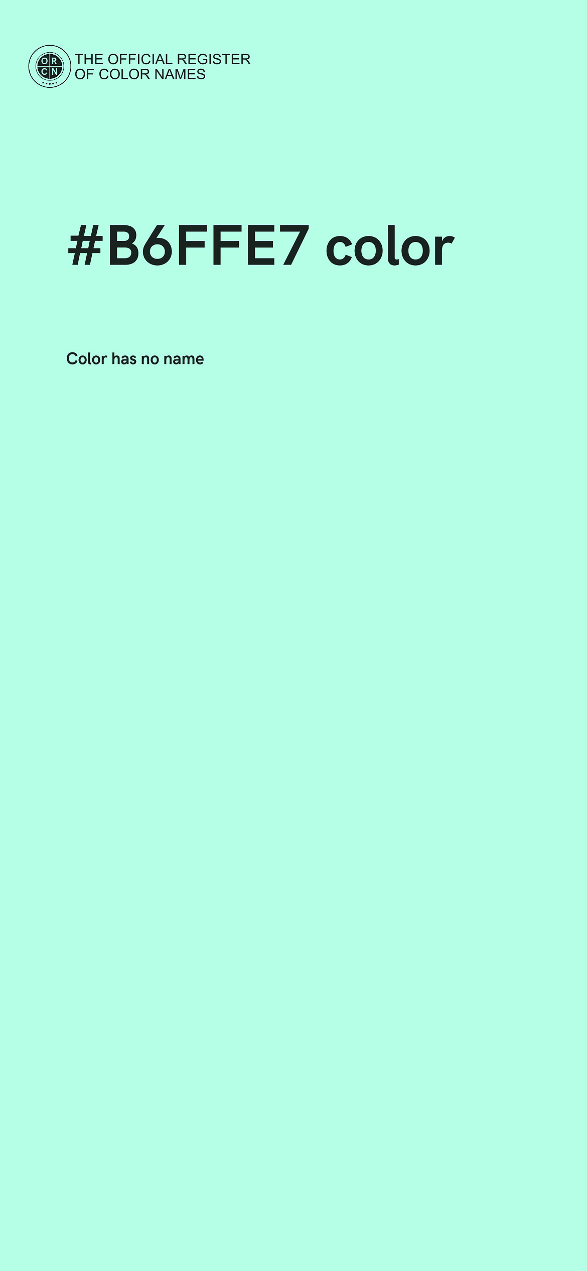 The digital color HEX #B6FFE7 belongs to the Spring Green Color Family featuring Full Saturation (Saturation Family) and Luminous (Brightness Family).
