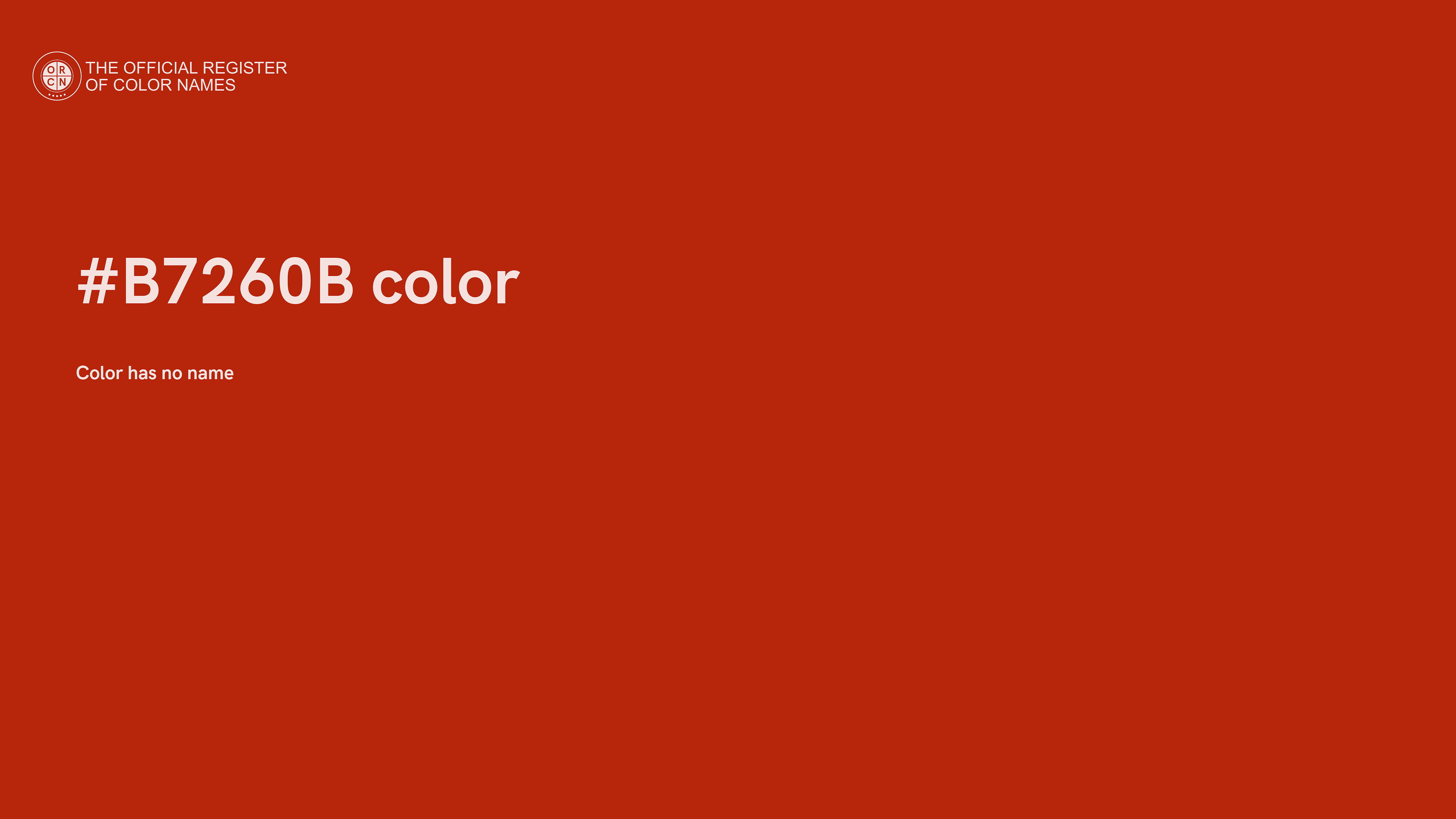 The digital color HEX #B7260B belongs to the Red Color Family featuring Full Saturation (Saturation Family) and Neutral (Brightness Family).
